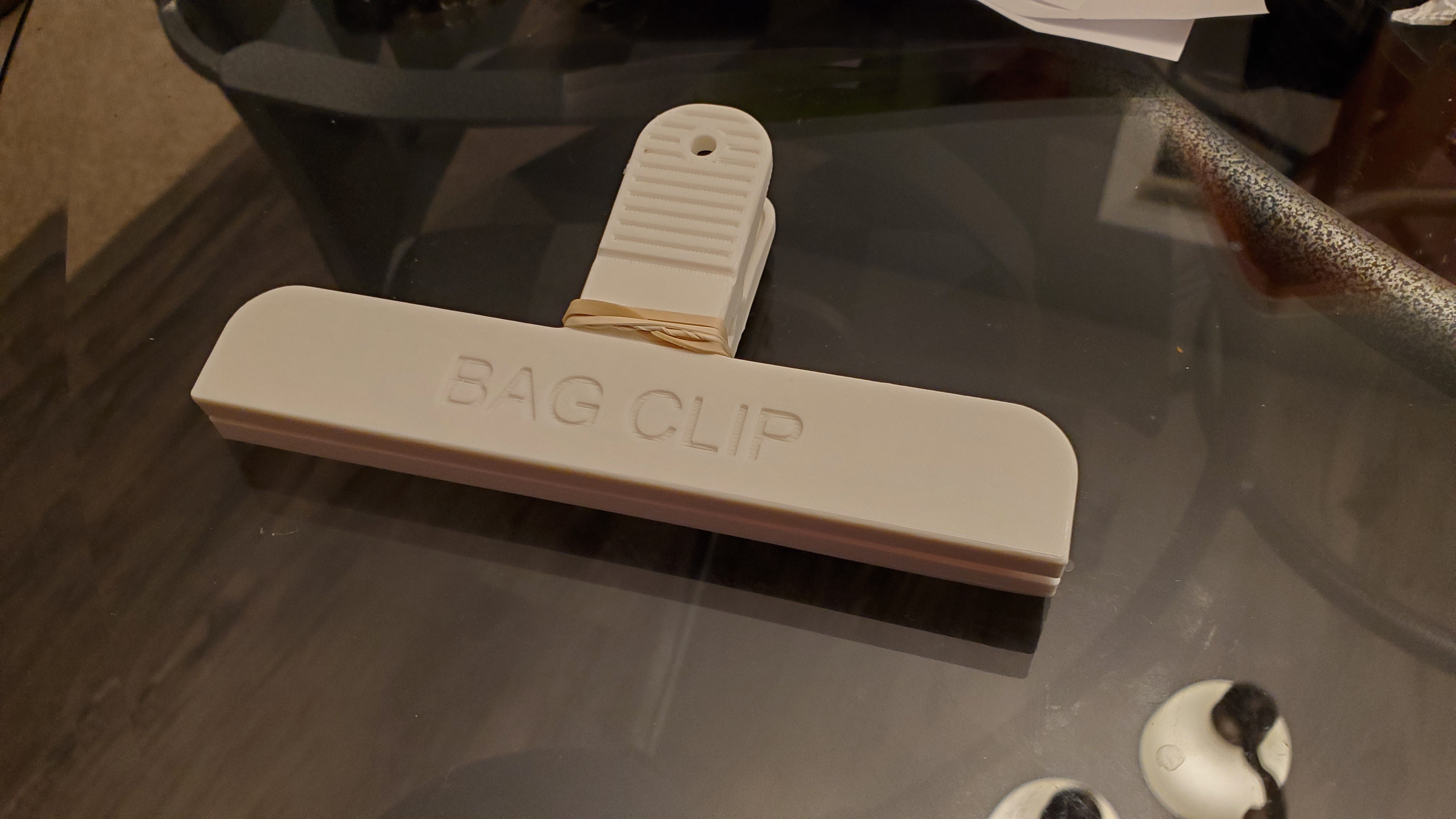 Este es un clip para bolsas diseñado para mantener sus bolsas cerradas y el contenido fresco. El clip está diseñado simétricamente, por lo que sólo necesita imprimir dos piezas para que encajen. Si no tienes el muelle, puedes simplemente enrollar una goma elástica alrededor de la ranura para elegir la tensión.
