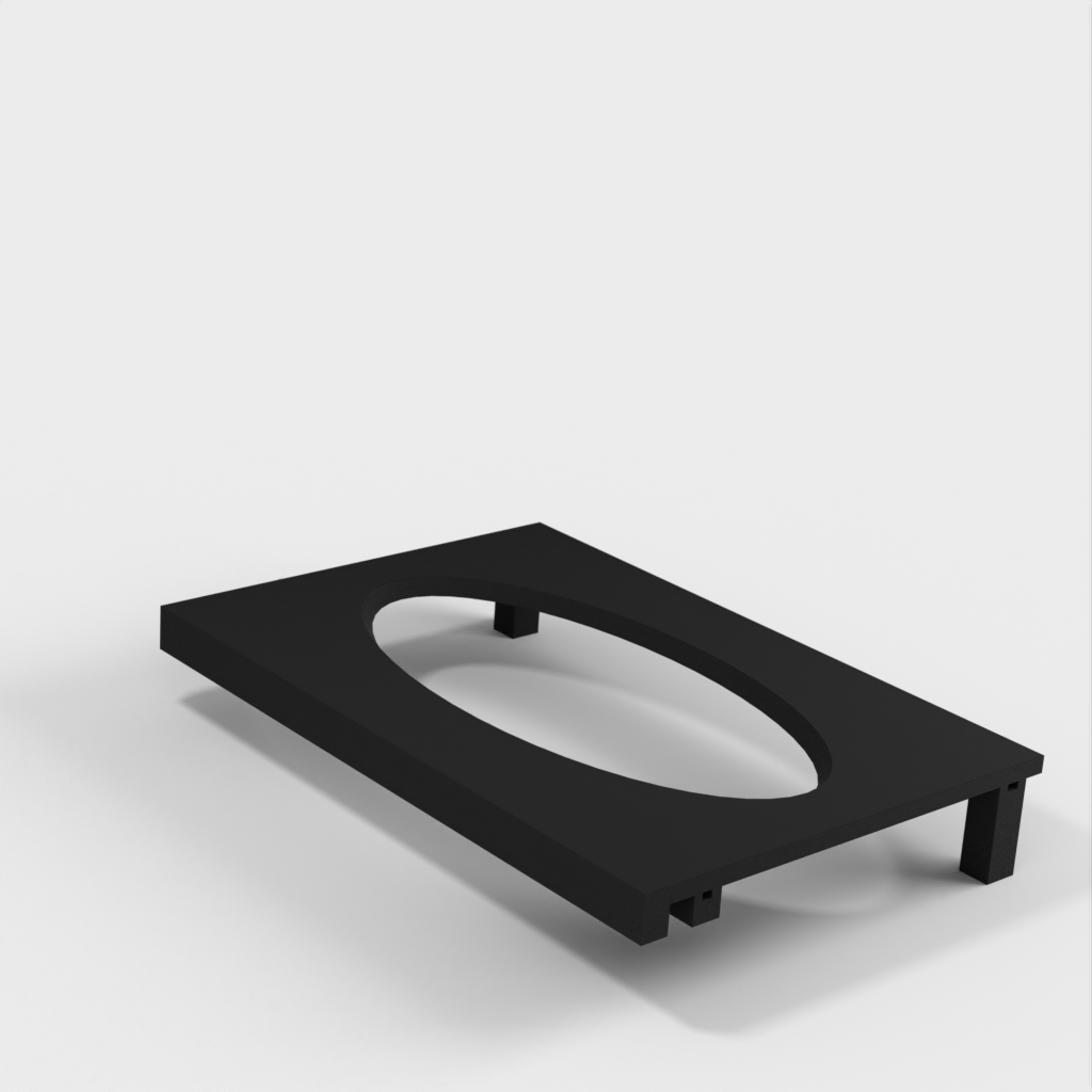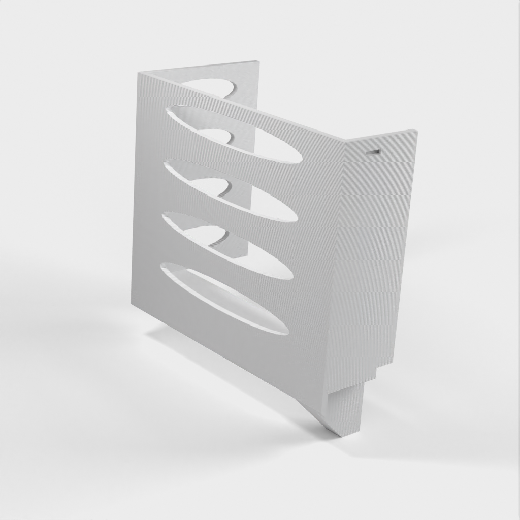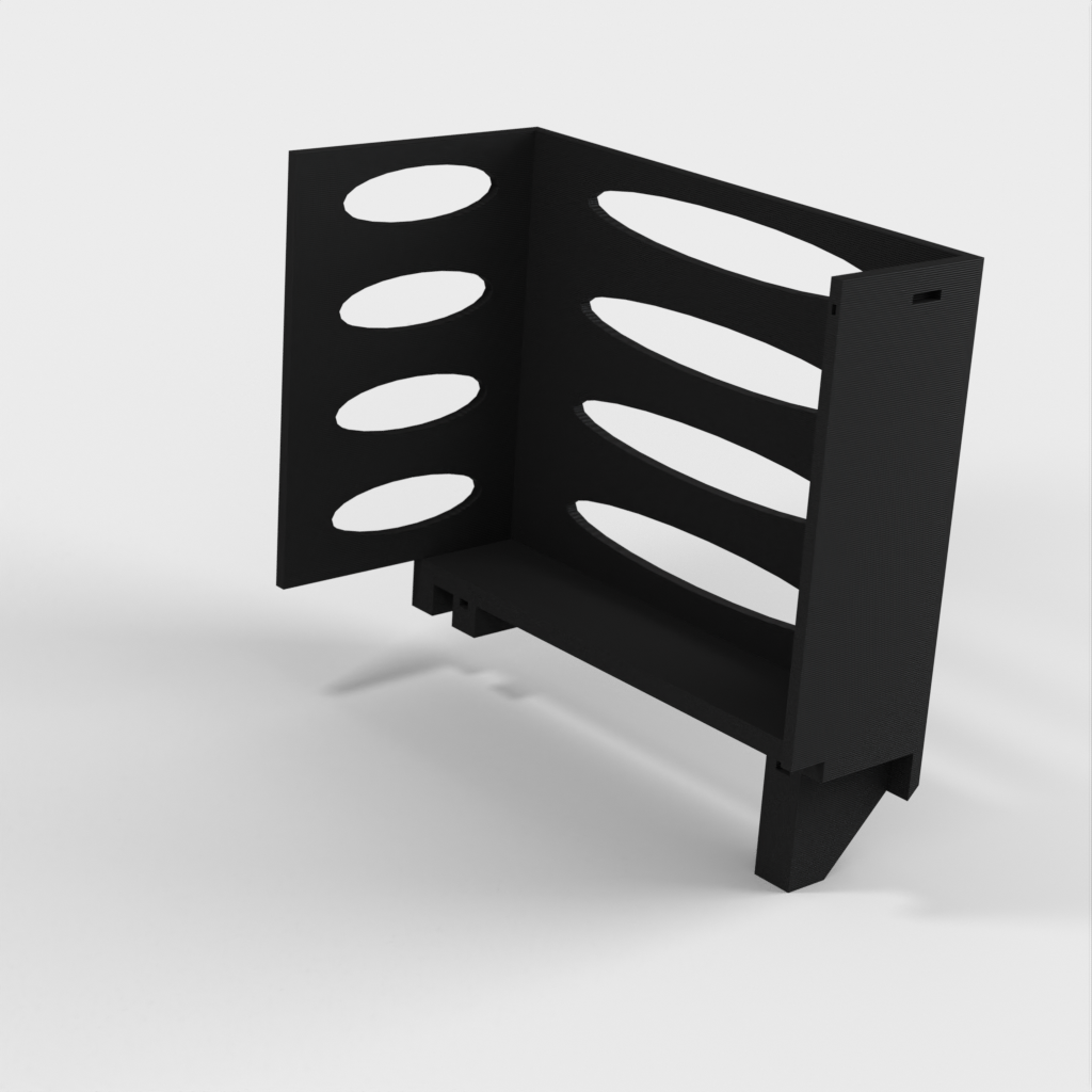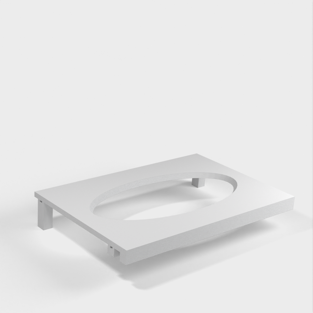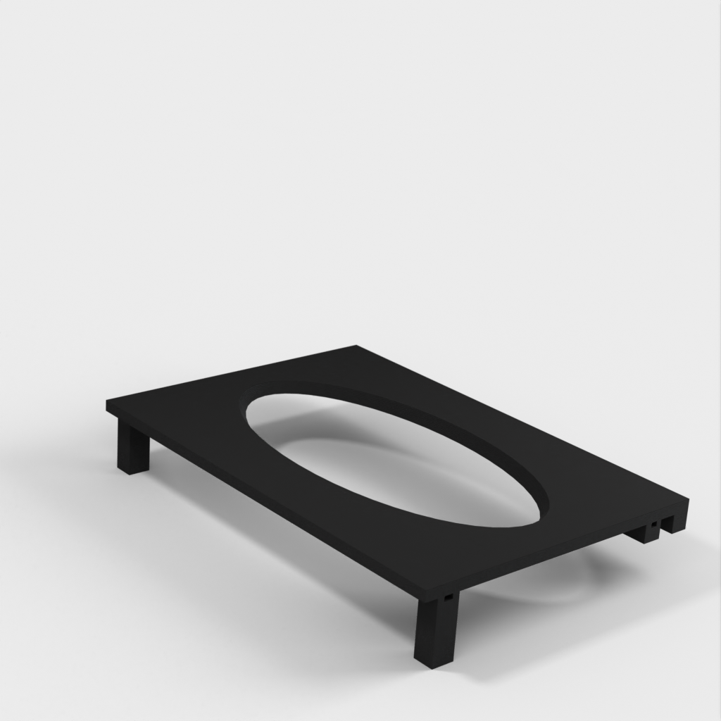 Este dispensador de toallas de papel se puede montar en un soporte de estante Ikea Grundtal. Simplemente retire la bandeja y coloque los elementos impresos en las consolas. El producto tiene aberturas más pequeñas en la parte inferior que se pueden utilizar para sujetar los artículos con un hilo fino. También hay aberturas en la parte posterior para el montaje. Las dimensiones internas son 130x 254 mm.