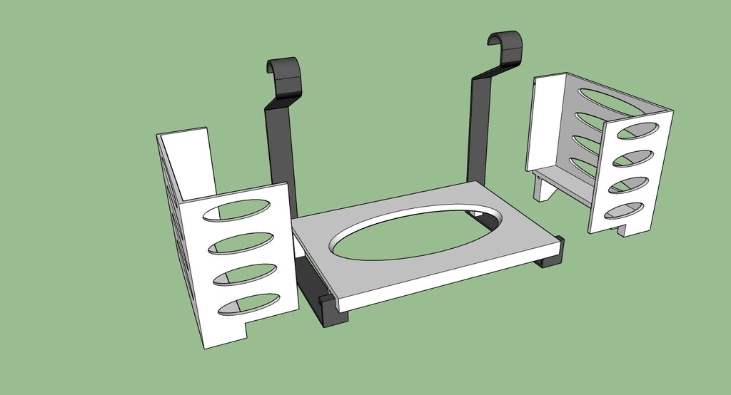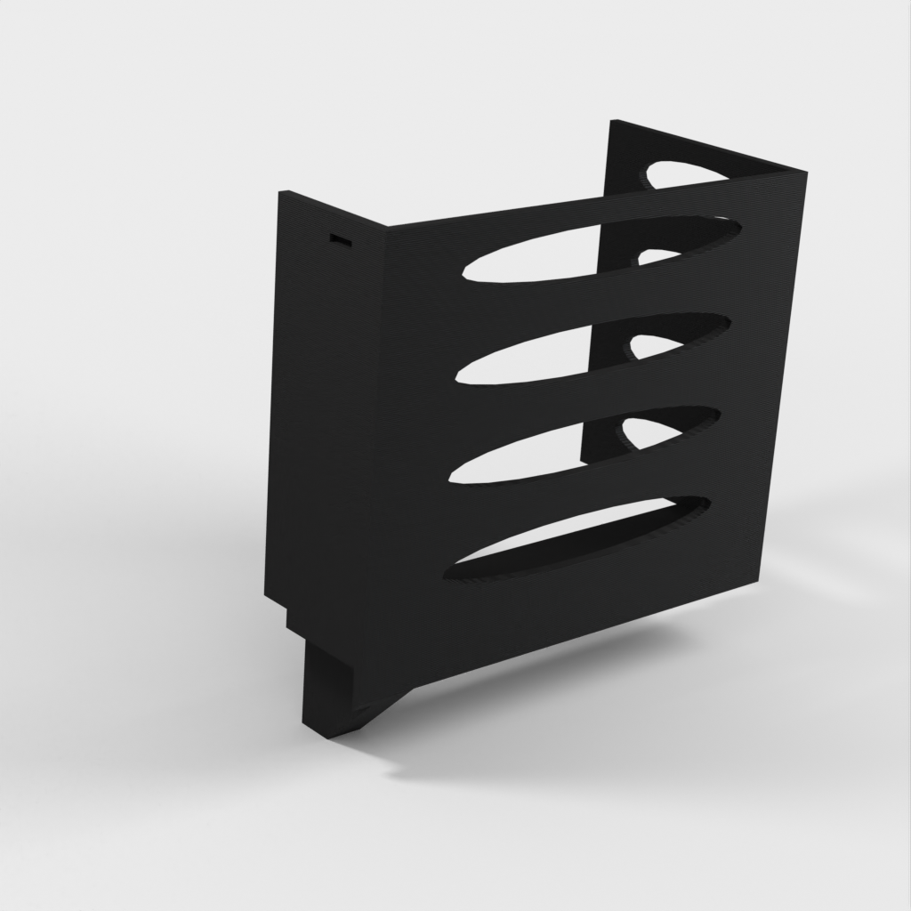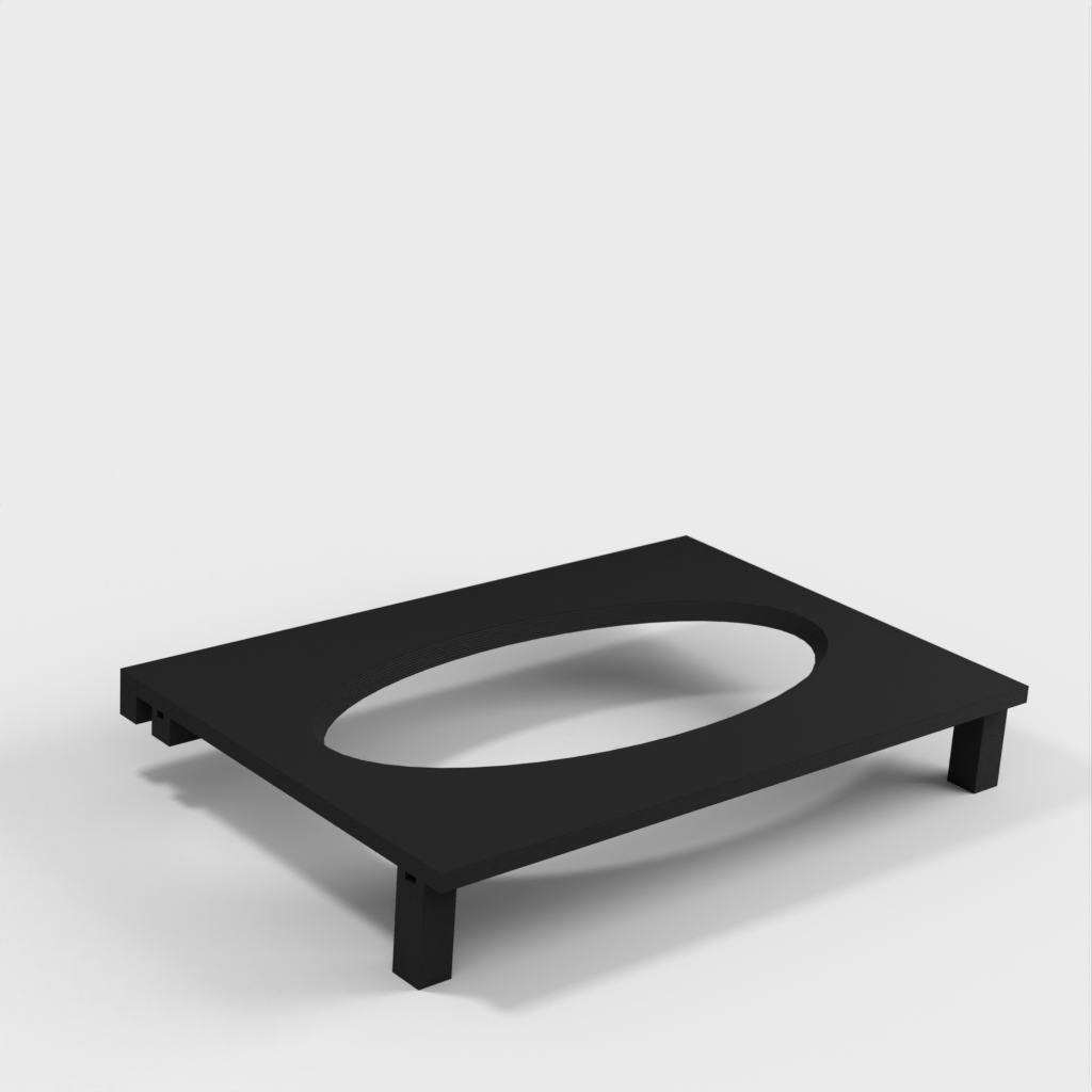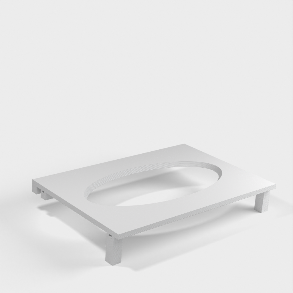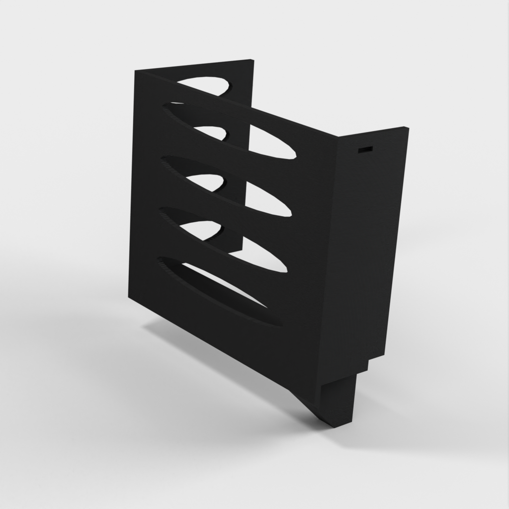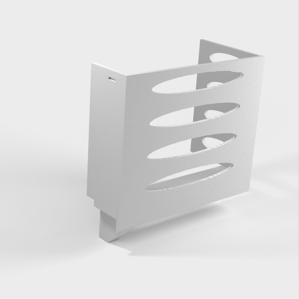 Este dispensador de toallas de papel se puede montar en un soporte de estante Ikea Grundtal. Simplemente retire la bandeja y coloque los elementos impresos en las consolas. El producto tiene aberturas más pequeñas en la parte inferior que se pueden utilizar para sujetar los artículos con un hilo fino. También hay aberturas en la parte posterior para el montaje. Las dimensiones internas son 130x 254 mm.