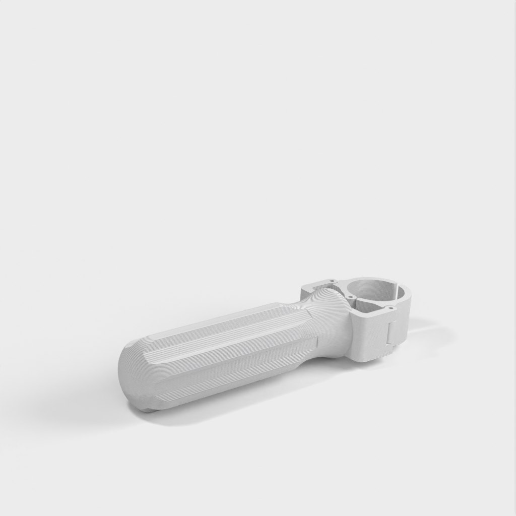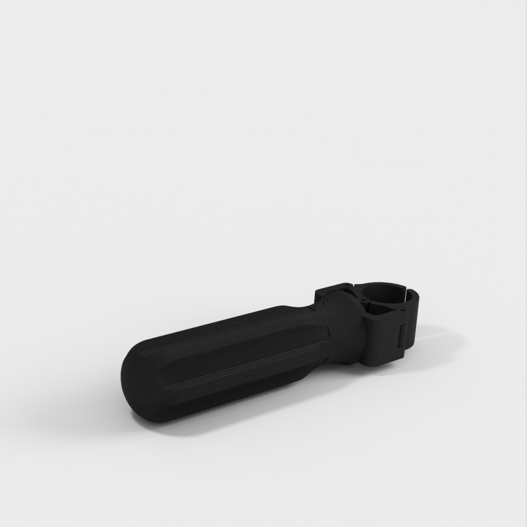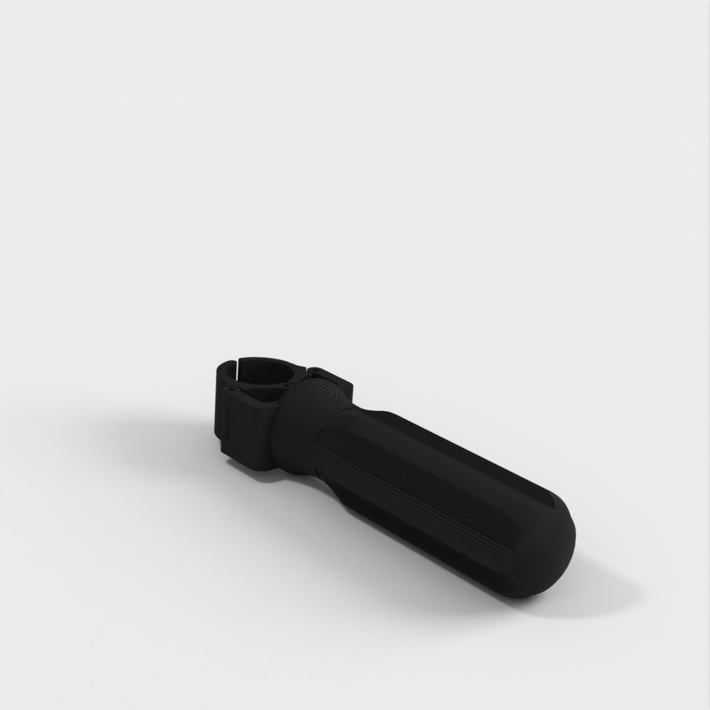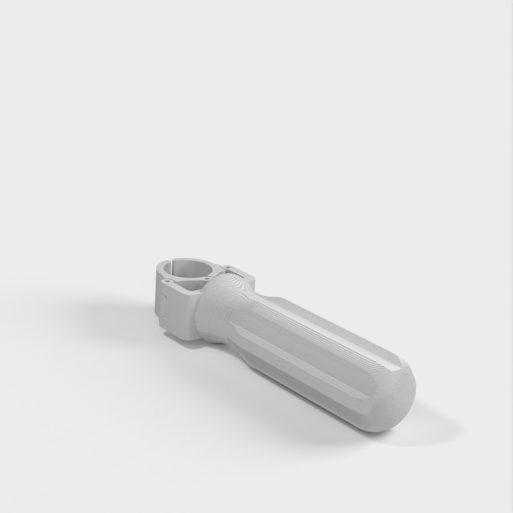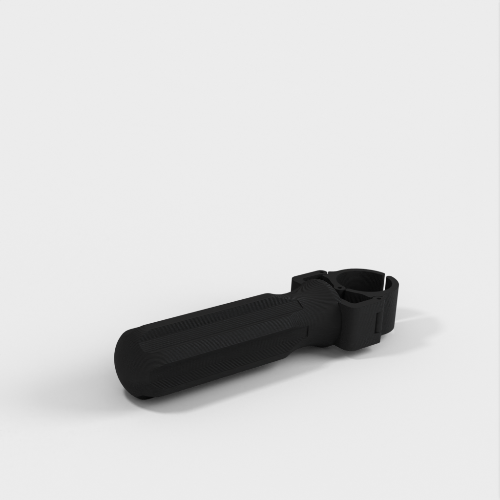 Este mango de escoba de accesibilidad está diseñado para personas que tienen dificultad para agarrar y utilizar una escoba con ambas manos. Permite que una mano agarre el mango de la escoba mientras que la otra agarra esta extensión ajustable perpendicular al mango, haciendo que barrer sea más fácil para las personas con problemas de movilidad o flexibilidad.