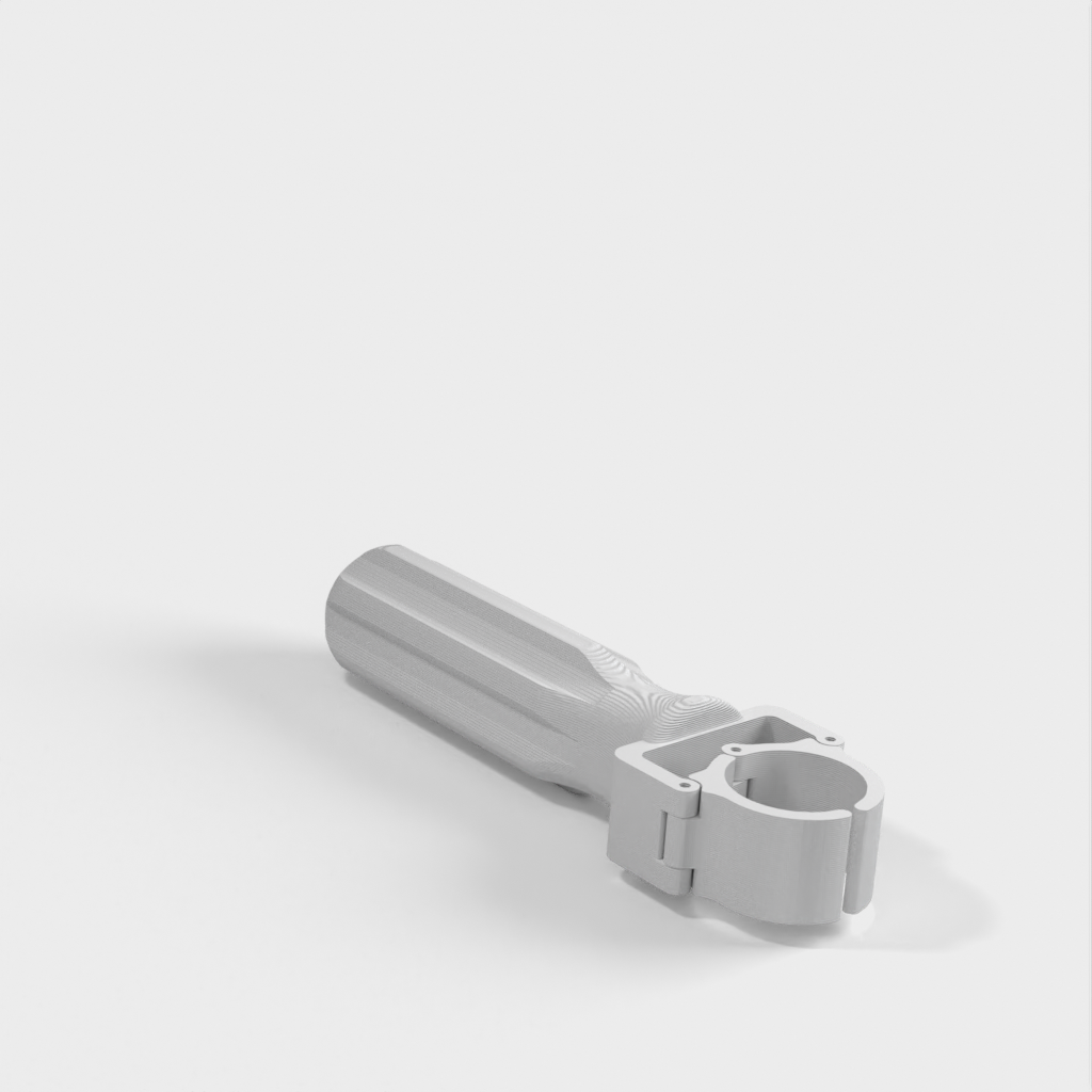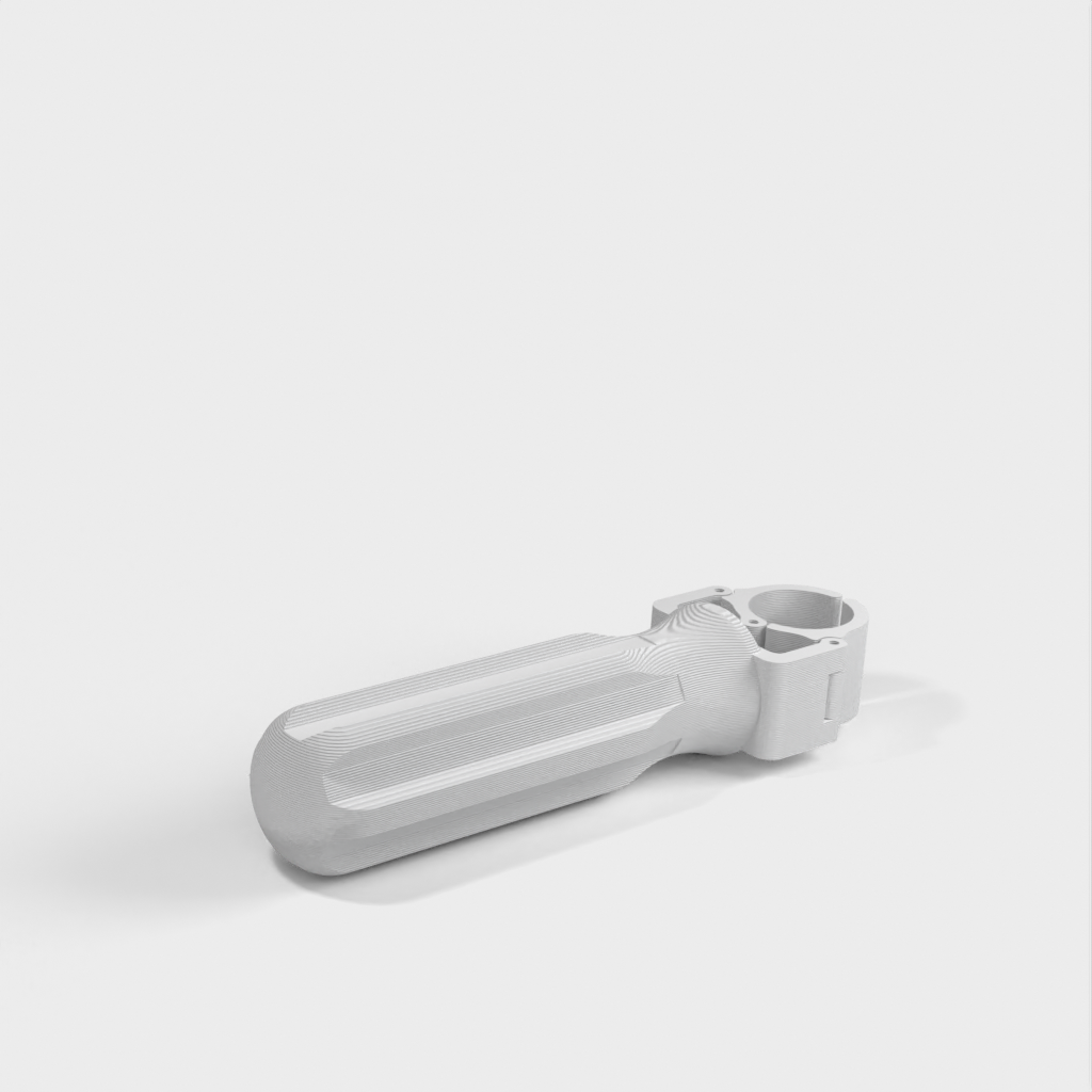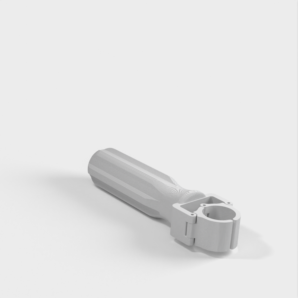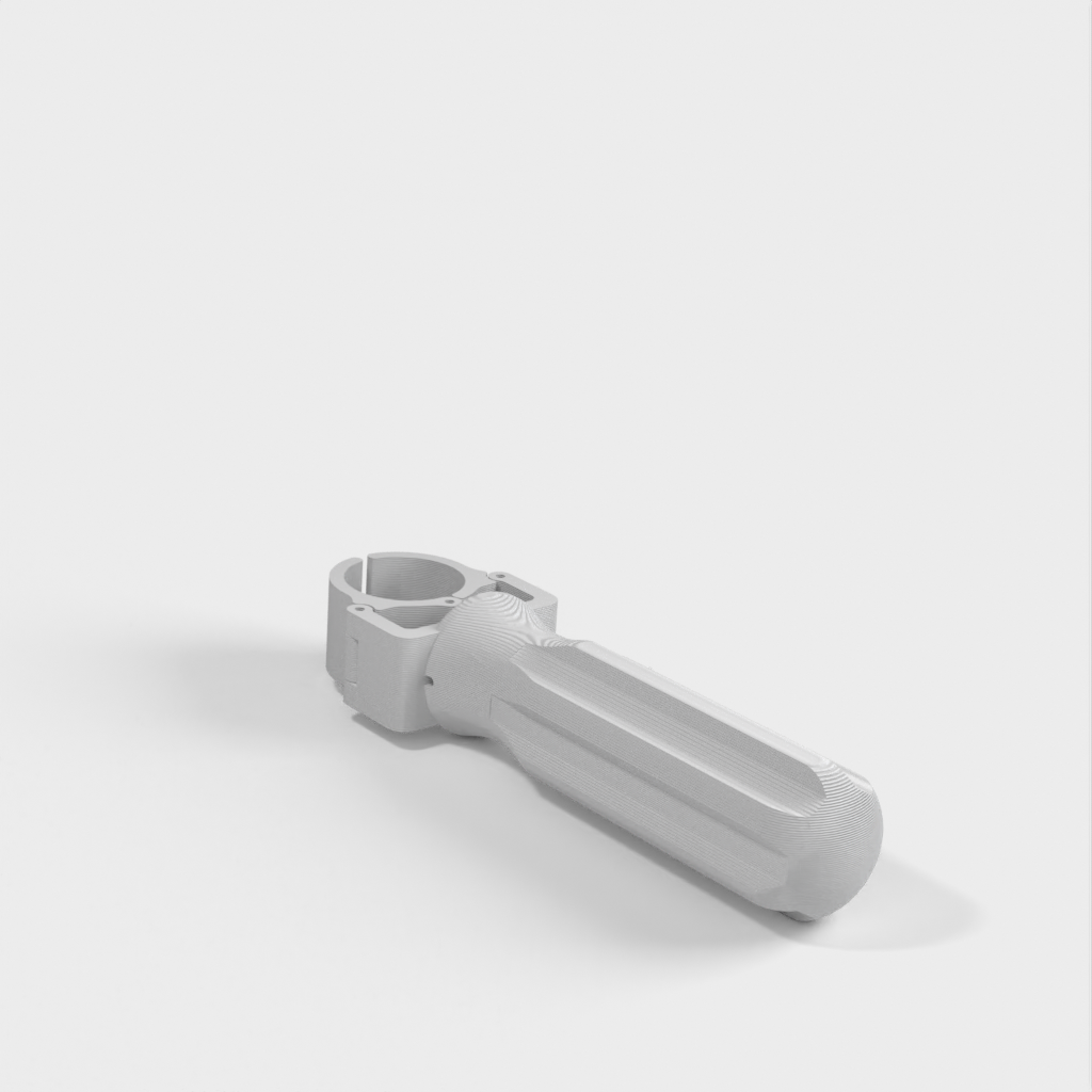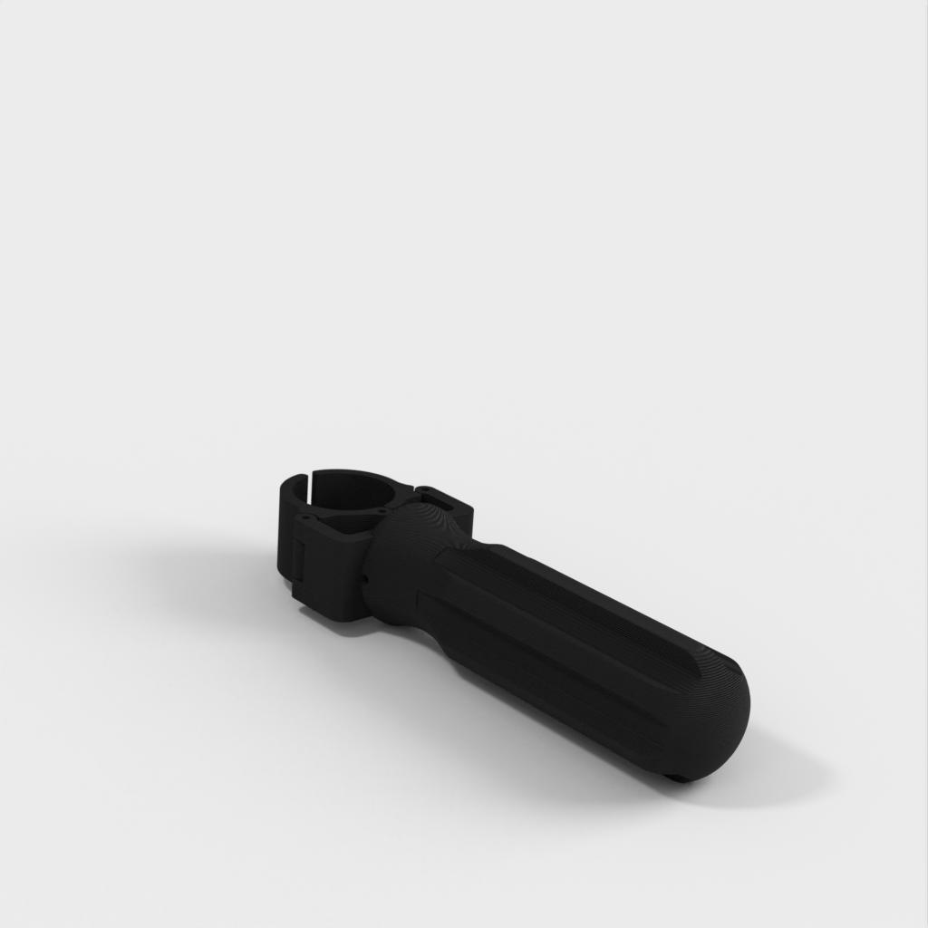 Este mango de escoba de accesibilidad está diseñado para personas que tienen dificultad para agarrar y utilizar una escoba con ambas manos. Permite que una mano agarre el mango de la escoba mientras que la otra agarra esta extensión ajustable perpendicular al mango, haciendo que barrer sea más fácil para las personas con problemas de movilidad o flexibilidad.