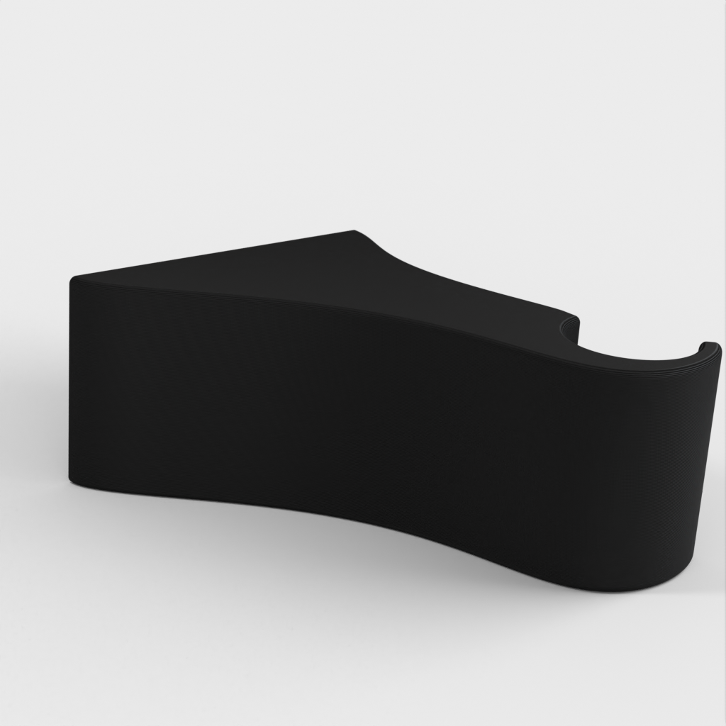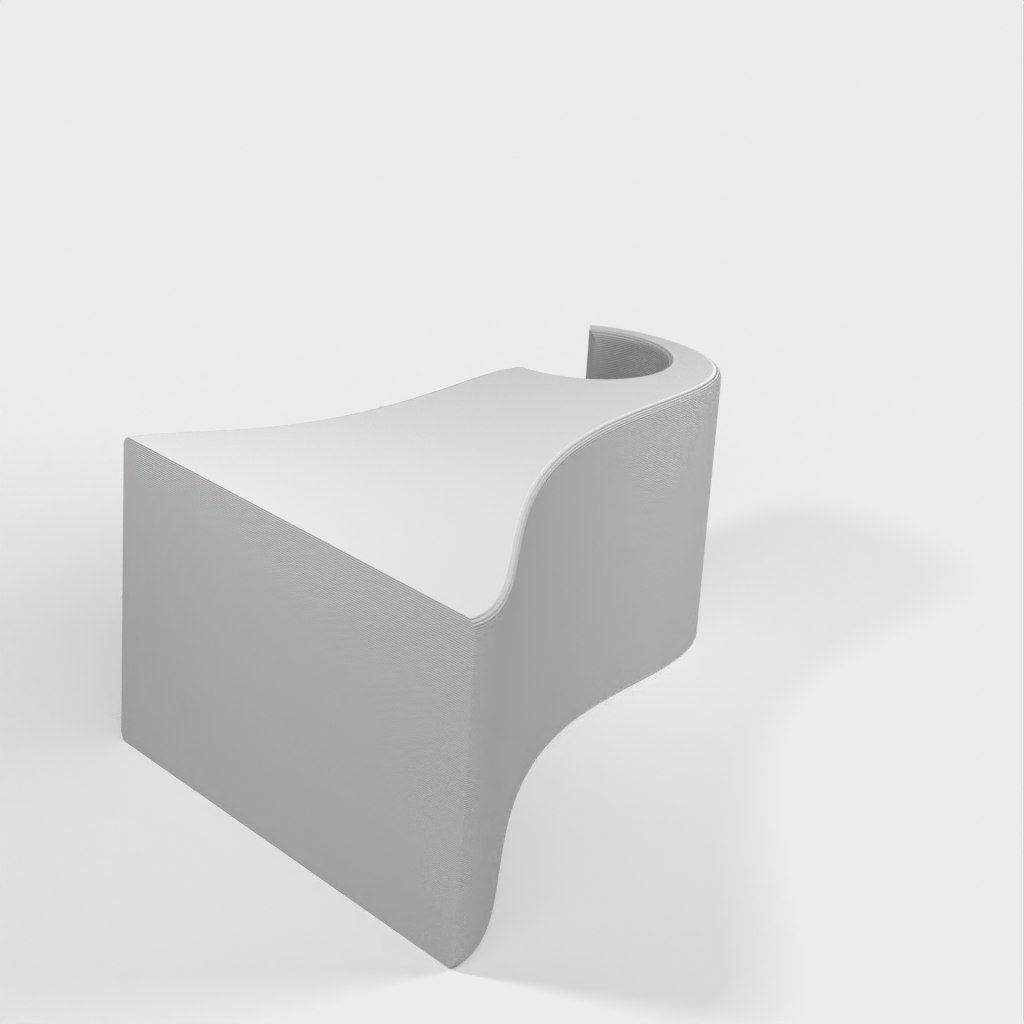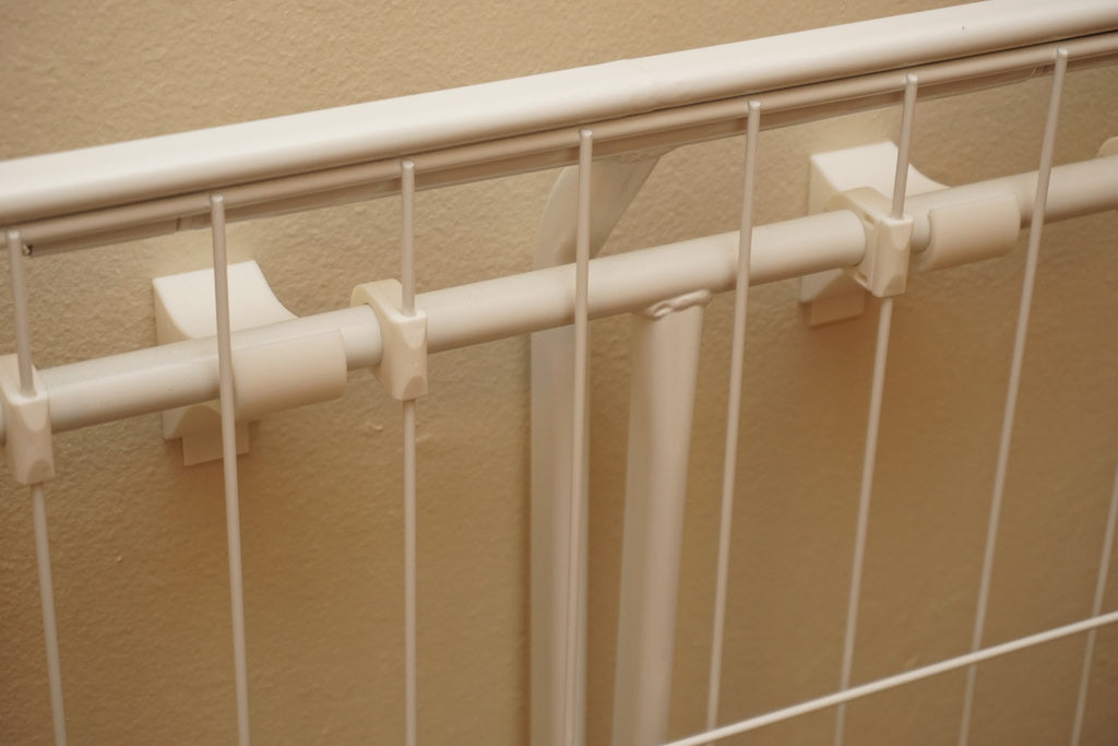 Este es un sencillo soporte de pared para un tendedero Ikea MULIG (número de artículo: 502.287.55 ). Está diseñado para fijarse a la pared mediante cinta adhesiva de doble cara (o en mi caso Command Strips). Utilizo dos para mantener mi estante fuera de la vista detrás de una puerta que normalmente está abierta.