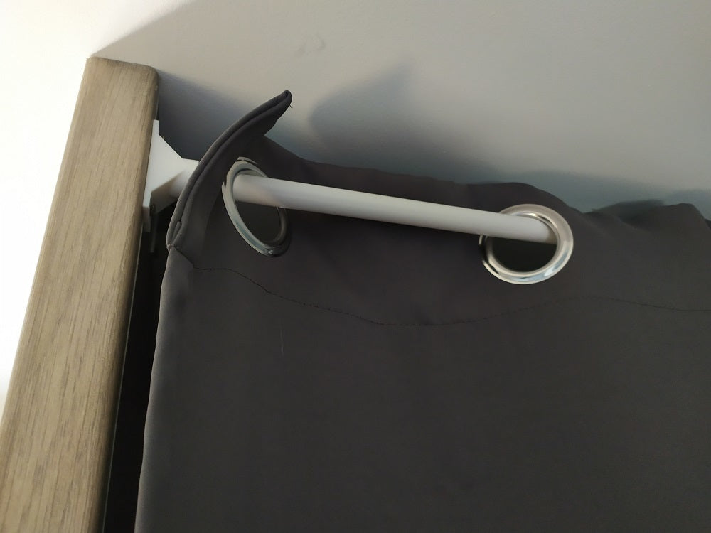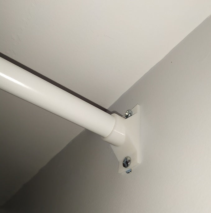 El soporte está diseñado para barras de cortina Ikea RÄCKA. Esto significa que puedes instalar la barra de la cortina sin necesidad de tornillos. Simplemente inserte la varilla en el soporte y quedará firmemente en su lugar.
