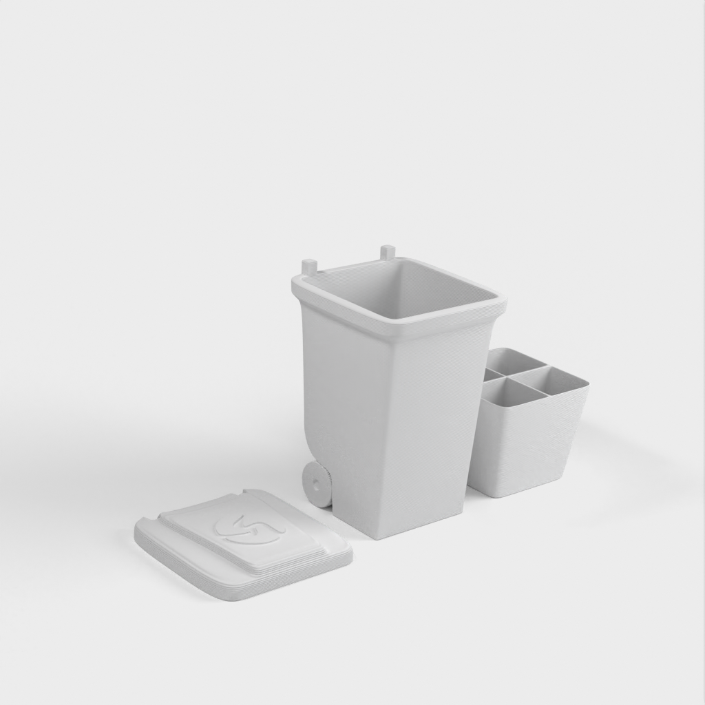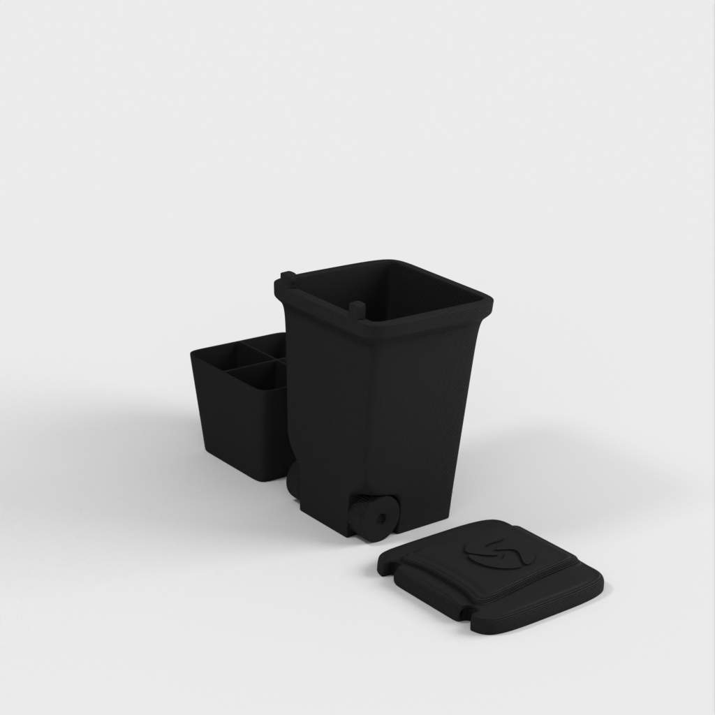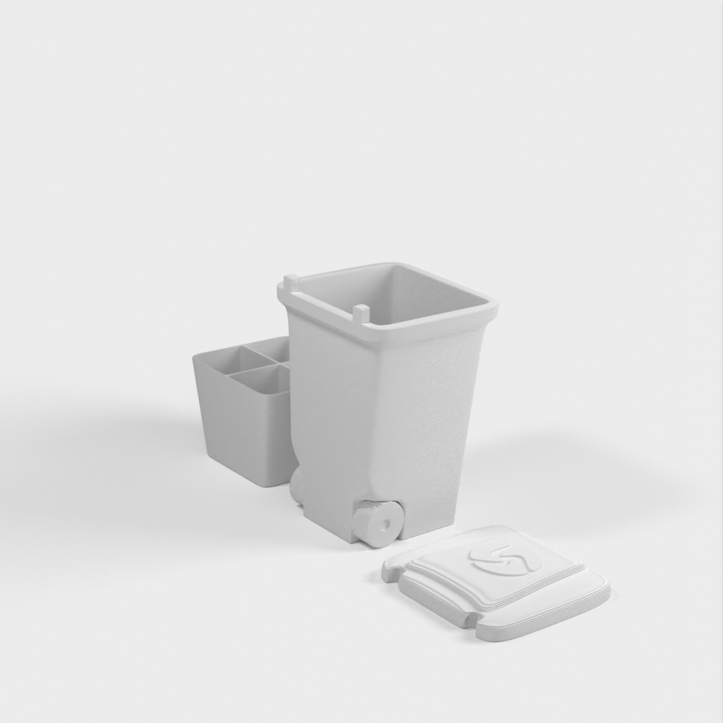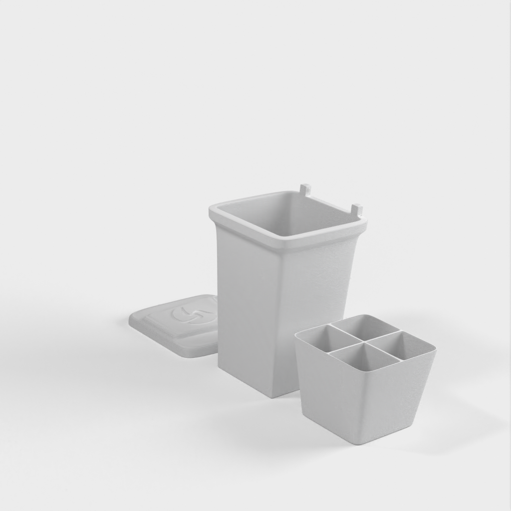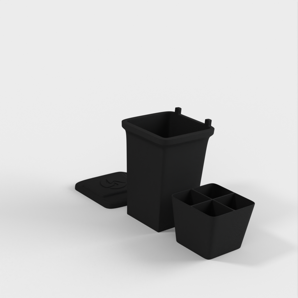 Una mini papelera para guardar objetos pequeños como tuercas y tornillos. Imprima las piezas por separado para diferentes materiales o todas a la vez. La tapa se encaja en su sitio y el inserto es extraíble. Diseñado para el lanzamiento de nuestro nuevo material, Landfillament, ¡que está hecho de basura! Más información aquí: https://www.youtube.com/watch?v=TSWXhDounRY