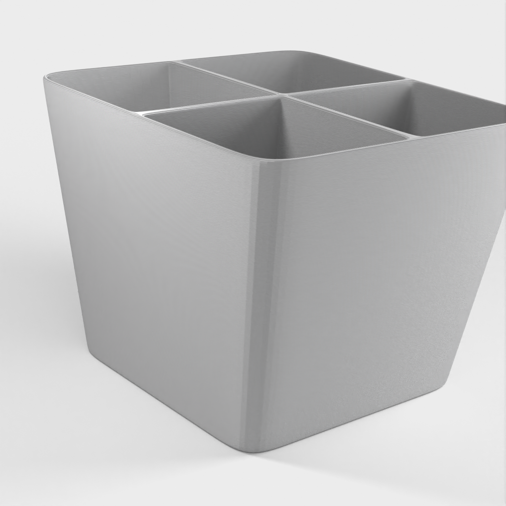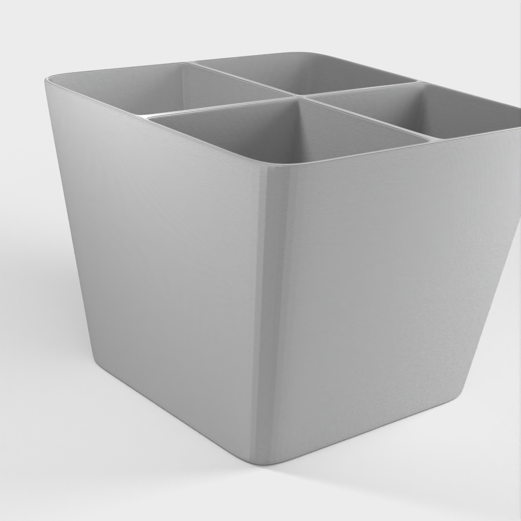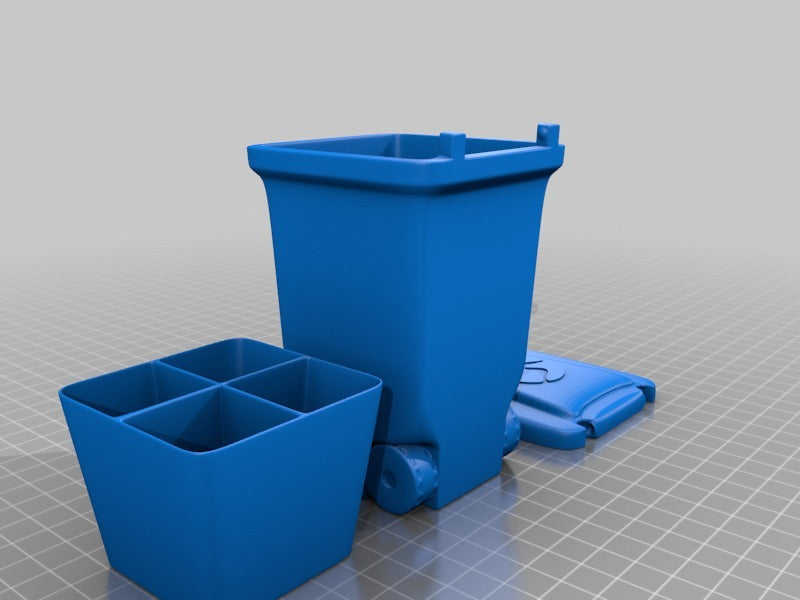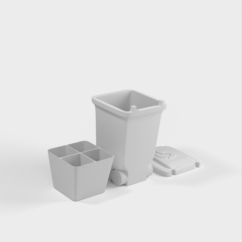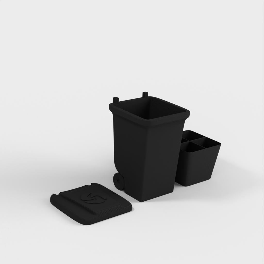Una mini papelera para guardar objetos pequeños como tuercas y tornillos. Imprima las piezas por separado para diferentes materiales o todas a la vez. La tapa se encaja en su sitio y el inserto es extraíble. Diseñado para el lanzamiento de nuestro nuevo material, Landfillament, ¡que está hecho de basura! Más información aquí: https://www.youtube.com/watch?v=TSWXhDounRY