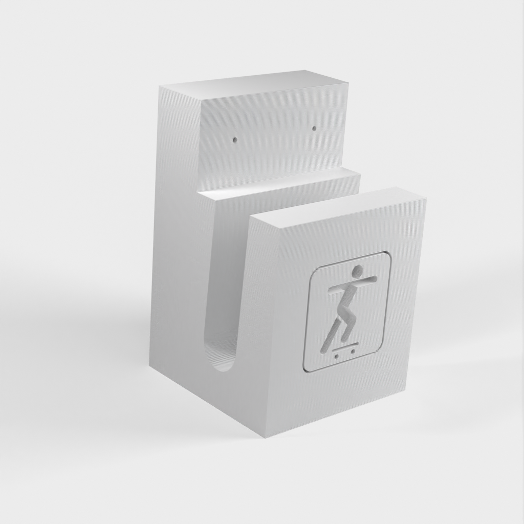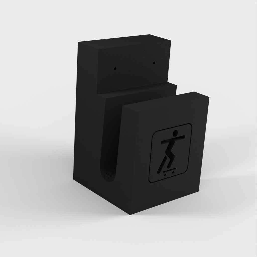 Soporte de pared para monopatín con dos orificios para tornillos para que tu configuración de skate esté más organizada y ahorres espacio. Está construido con una abertura de 24 mm para adaptarse a la mayoría de las tablas de monopatín. Fácil de montar en la pared, lo que lo hace ideal tanto para monopatines normales como para monopatines eléctricos.