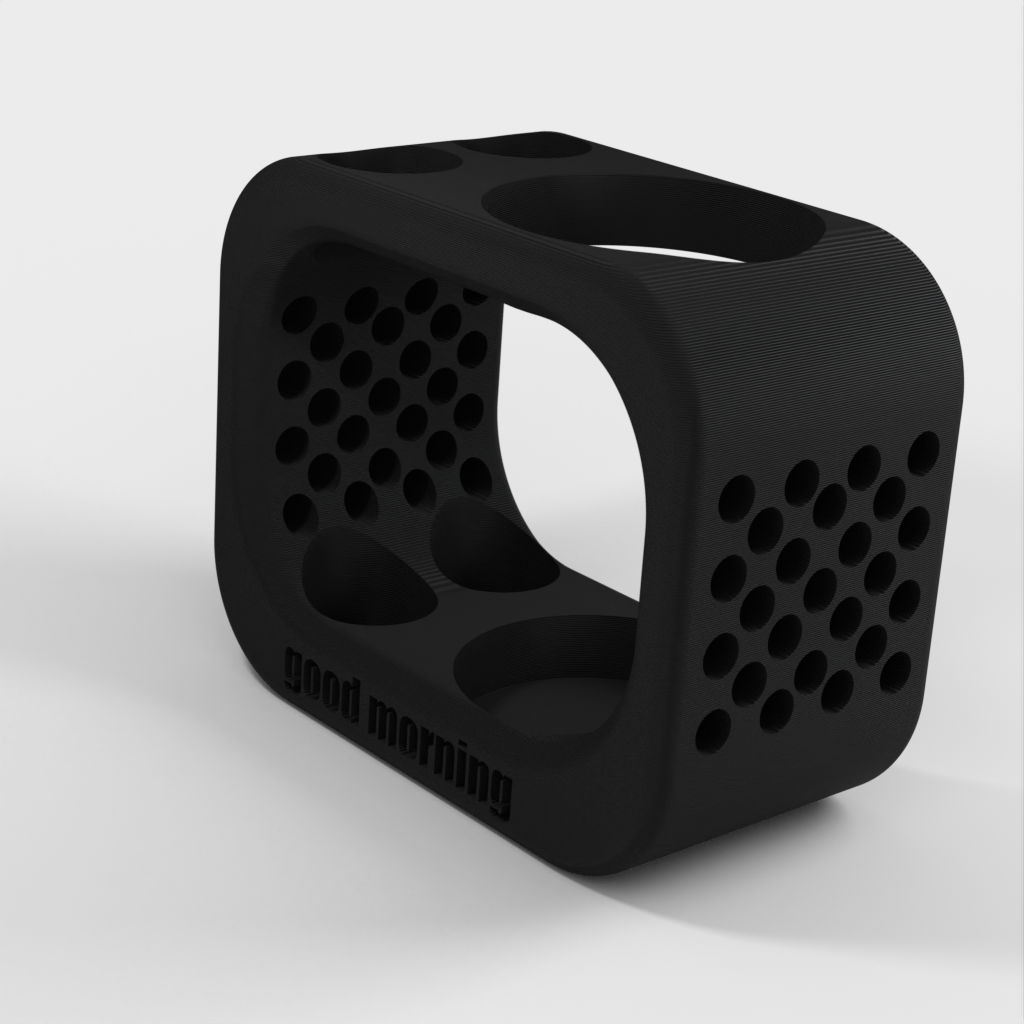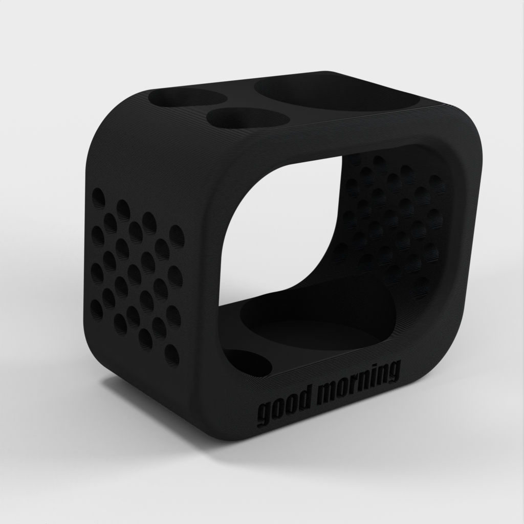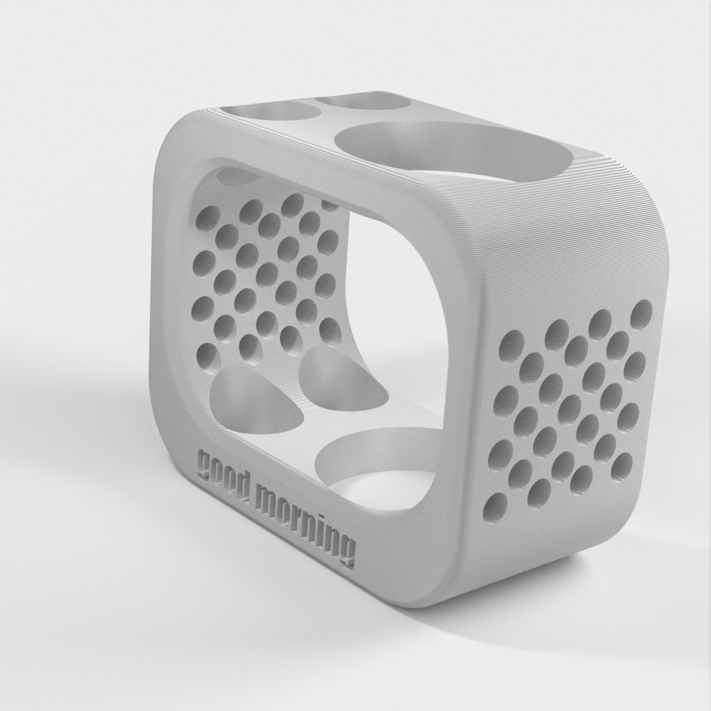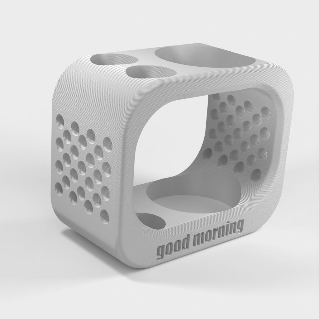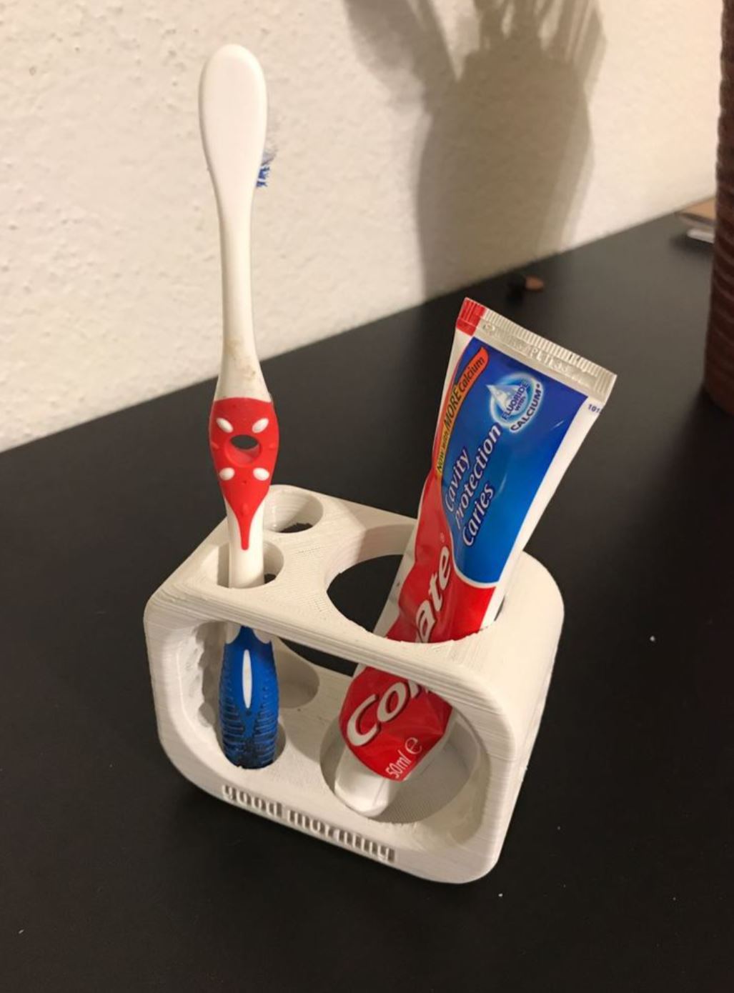 Este es un sencillo portacepillos de dientes diseñado para contener dos cepillos de dientes y una pasta de dientes. Puedes imprimirlo fácilmente y empezar tu nuevo día con una sonrisa.