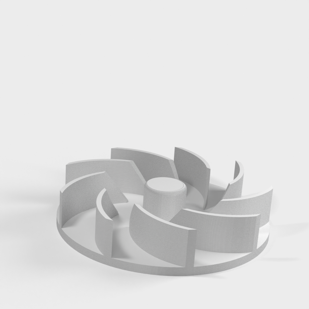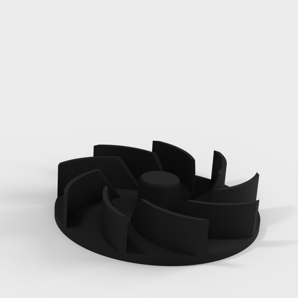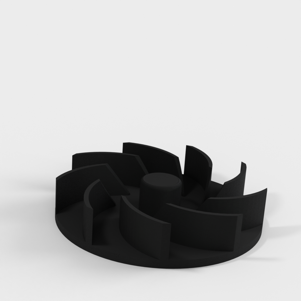Rotor de repuesto para soplador de hojas Ryobi RBL1802. El diseño de dos partes facilita el reemplazo de un rotor roto y asegura que su herramienta funcione de manera óptima nuevamente. Para montar en el eje del motor, se recomienda usar un poco de cinta de teflón y una arandela de fibra para asegurar la distancia correcta del motor y asegurar un ajuste perfecto.