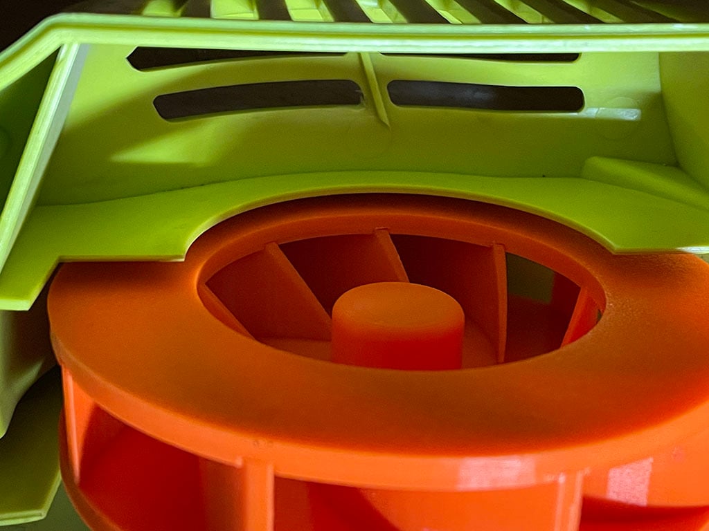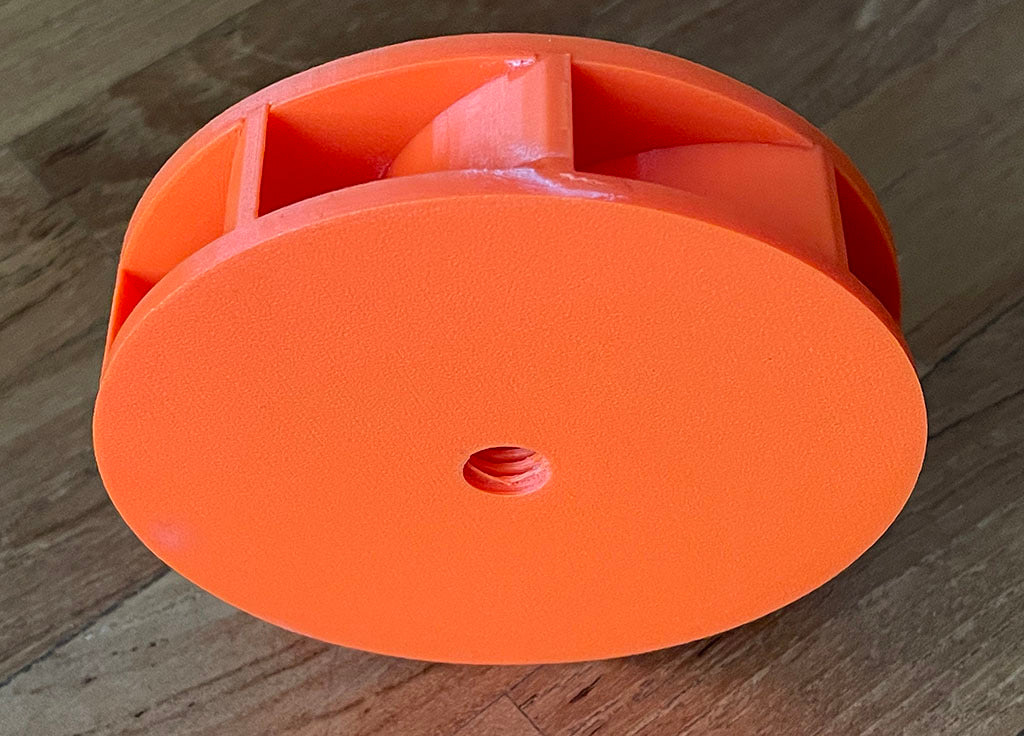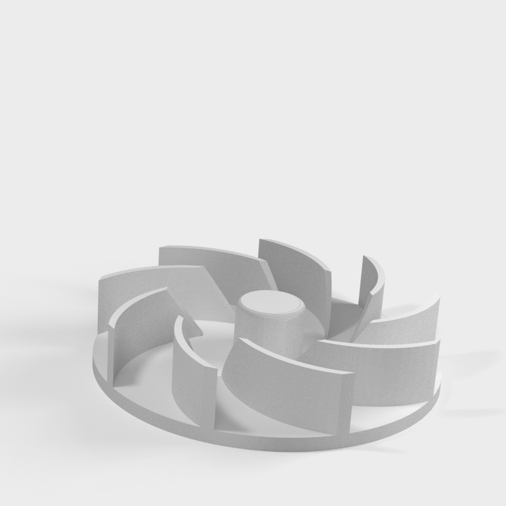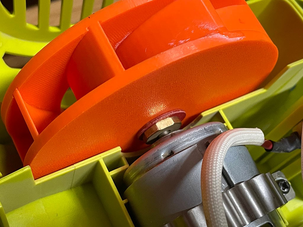 Rotor de repuesto para soplador de hojas Ryobi RBL1802. El diseño de dos partes facilita el reemplazo de un rotor roto y asegura que su herramienta funcione de manera óptima nuevamente. Para montar en el eje del motor, se recomienda usar un poco de cinta de teflón y una arandela de fibra para asegurar la distancia correcta del motor y asegurar un ajuste perfecto.