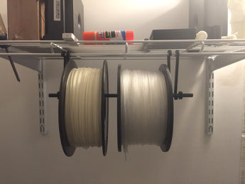 Este práctico portacarretes está diseñado para optimizar su espacio de trabajo utilizando el espacio debajo de sus estantes de alambre. Proporciona una solución eficaz para almacenar carretes y ayuda a mantener ordenado su taller o sala de pasatiempos. El portacarretes utiliza un tubo de fibra de carbono de 9 mm, que proporciona una base estable para sus filamentos u otros carretes.