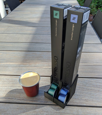 El soporte modular para cápsulas Nespresso es un soporte flexible para sus cápsulas Nespresso. El diseño le permite personalizar el soporte para que se ajuste a la cantidad exacta de cajas que desea almacenar.
