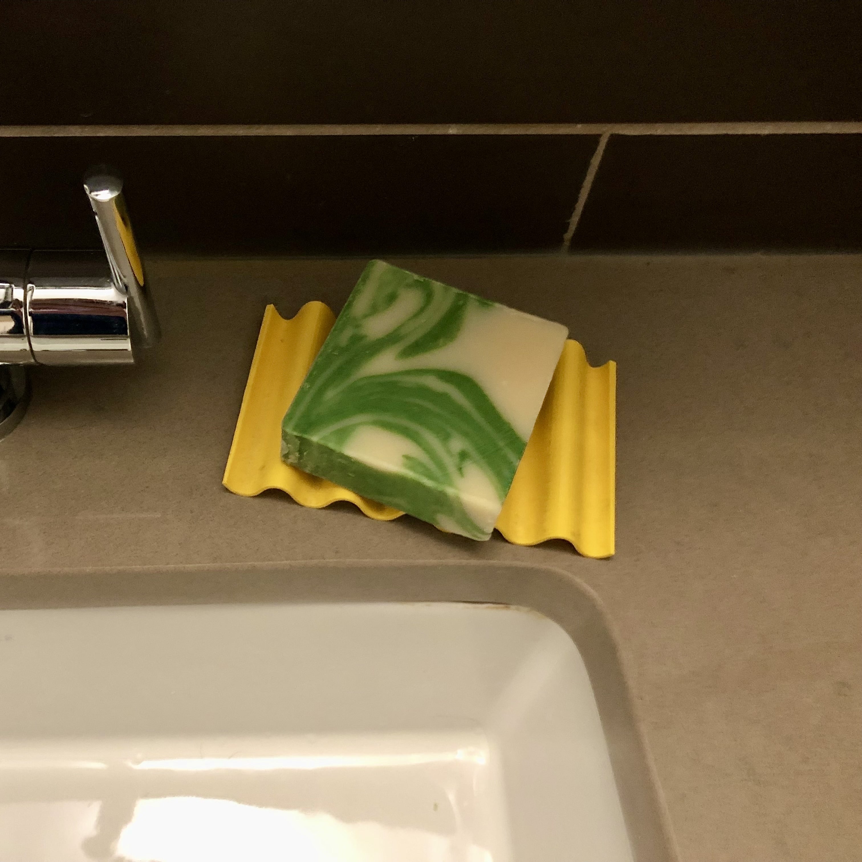 Esta es una práctica jabonera, con una impresión en el lateral, que está diseñada para sostener su jabón o esponja. No se necesita ningún soporte adicional.