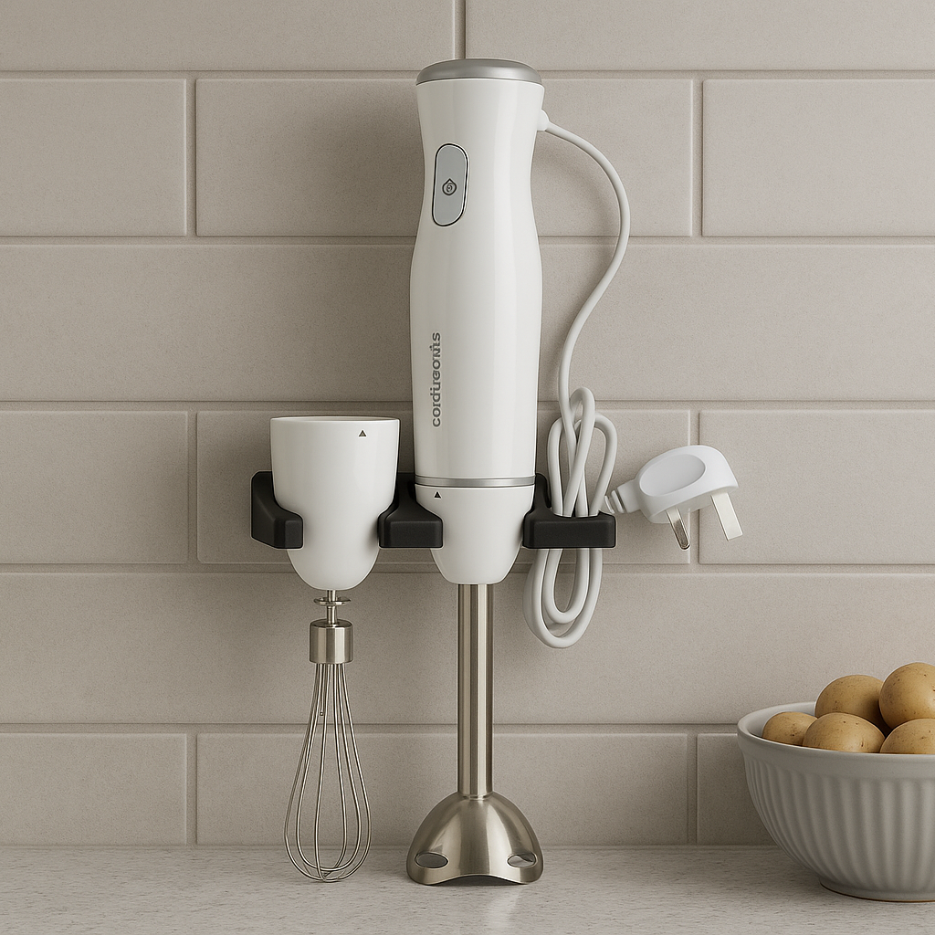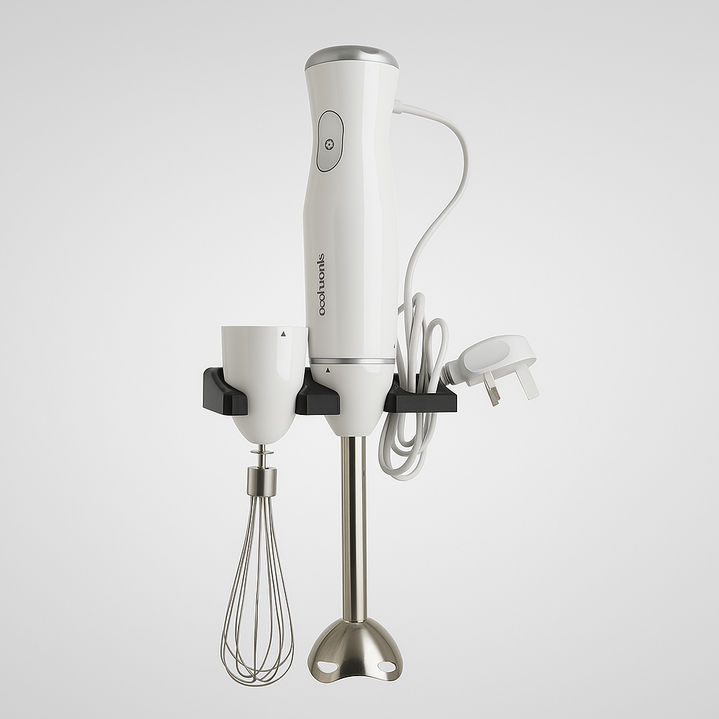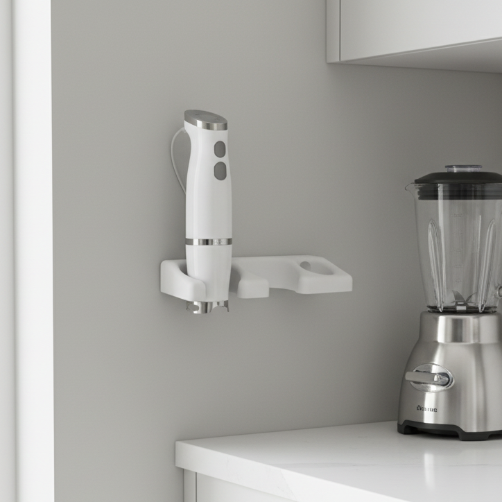 Optimice el espacio de su cocina y mantenga el orden con este soporte de pared inteligente para su batidora de mano. Dise tildeado para crear un ambiente ordenado y funcional, este soporte le permite guardar f p p cilmente su batidora de mano, sus accesorios y el cable en un solo lugar. As tanto, liberar p p valioso espacio en el armario y mantener las encimeras de su cocina libres de desorden.