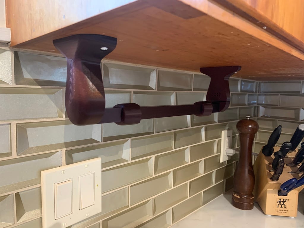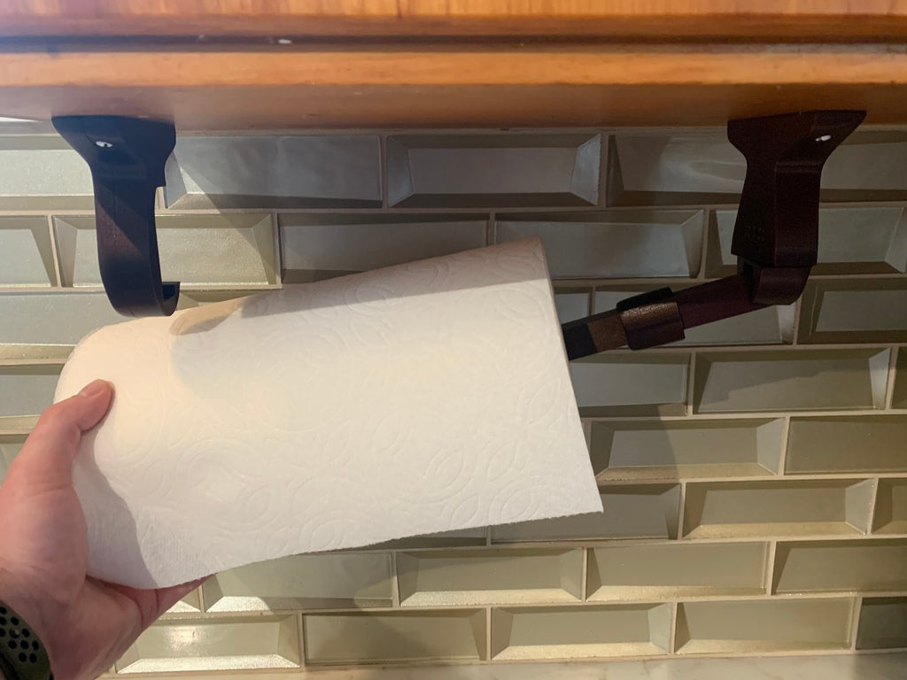 El soporte está optimizado para alojar toallas de papel con una longitud de 11 pulgadas y un diámetro de 6 pulgadas, para que pueda estar seguro de un buen ajuste. El material, Prusa PLA en un misterioso tono marrón, contribuye con una estética agradable que, con su efecto de madera y colores cambiantes en la luz, añade un toque elegante a la habitación.
