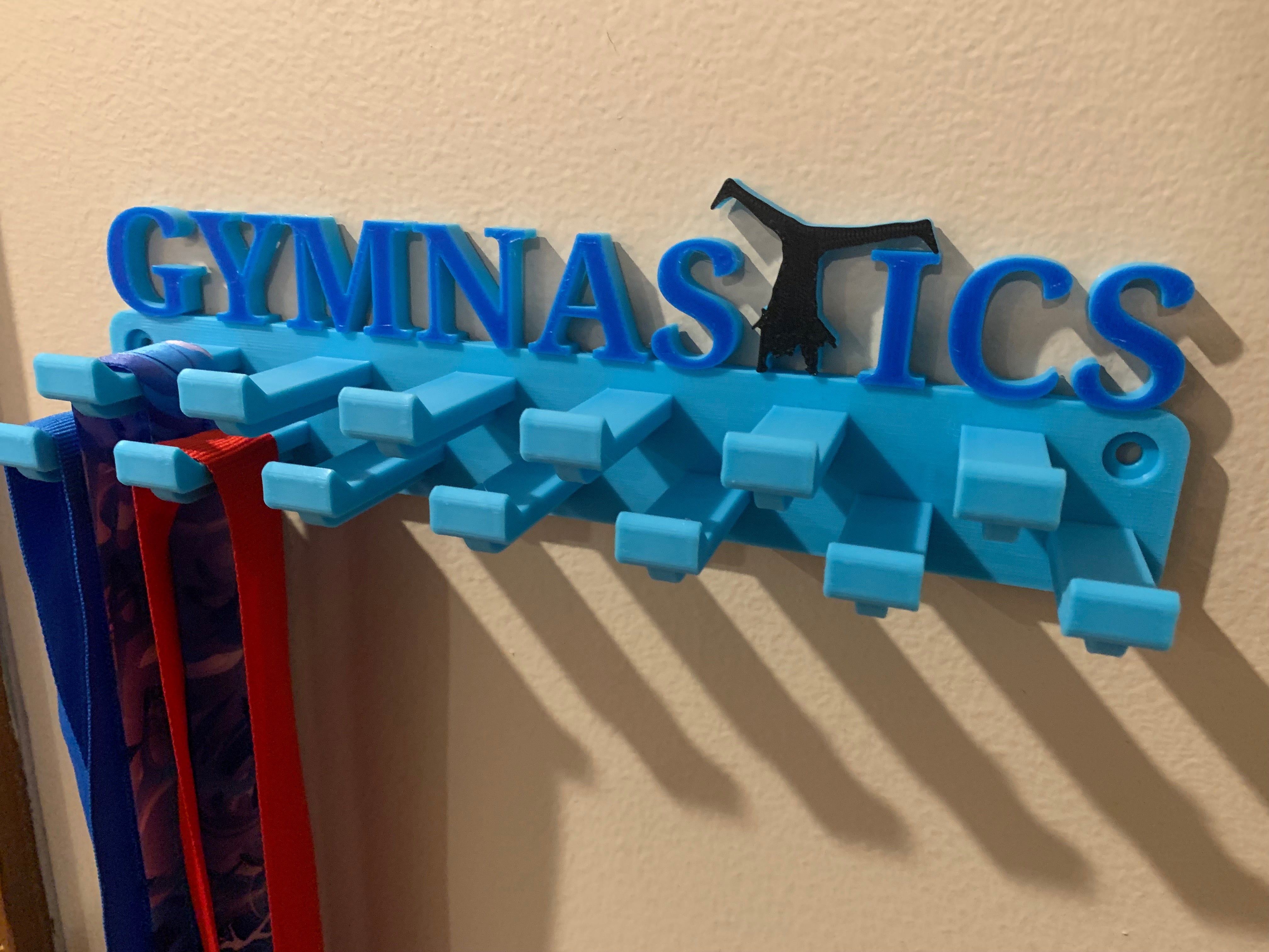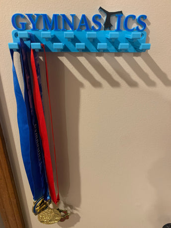 Mantén las medallas de gimnasia de tu hijo organizadas y ordenadas con este soporte de medallas diseñado especialmente para jóvenes gimnastas. Este soporte ofrece una forma divertida e inspiradora de exhibir sus logros, al mismo tiempo que añade un tema de gimnasia a la habitación. El diseño creativo, donde la 'T' del soporte representa a un niño en una emocionante voltereta, crea una atmósfera vibrante.