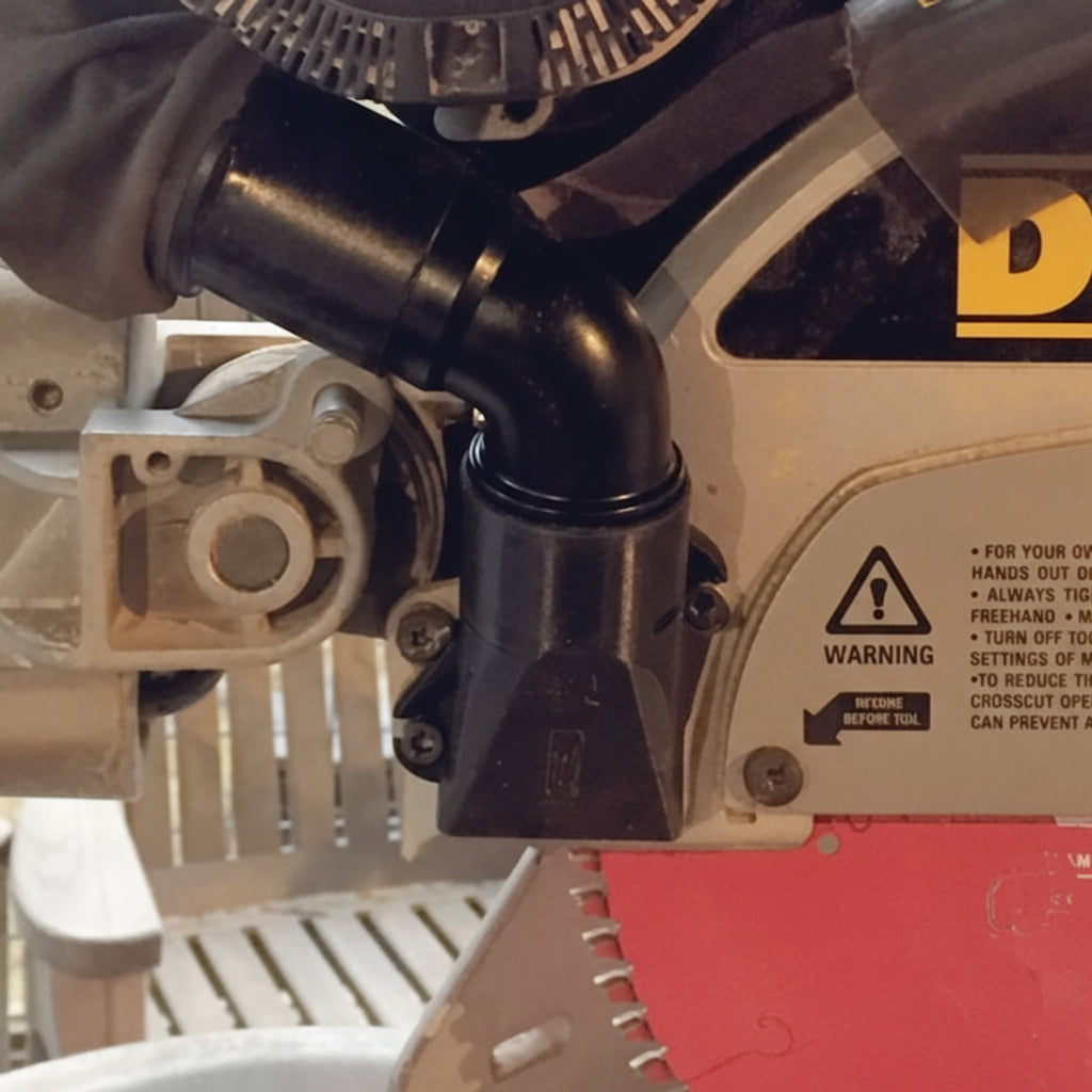 Boquilla de extracción de polvo impresa en 3D para DeWalt DW708. Este es un reemplazo para el producto original, actualmente obsoleto. Está diseñado para ayudar con la eliminación de virutas y polvo durante el uso para mantener limpia su área de trabajo.