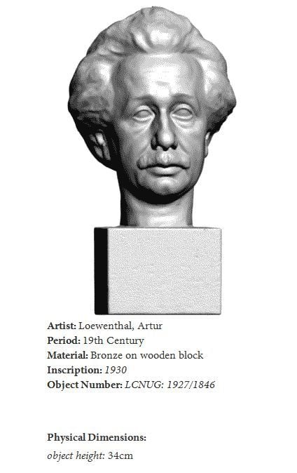 Un busto escaneado en 3D de Albert Einstein, que anteriormente se exhibió en la Usher Gallery y The Collection en Lincoln, Gran Bretaña. El busto es una reproducción exacta de la escultura de bronce original, creada por Artur Loewenthal en 1930.