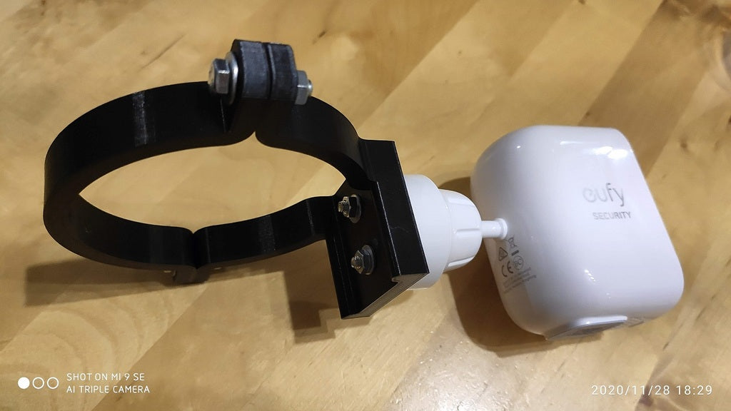 Este SOPORTE EUFY CAM 2C está diseñado para fijar su cámara a una bajante con un diámetro de 80 mm. Es una solución fácil y práctica para aquellos que desean instalar su cámara de seguridad EUFY en un lugar seguro y discreto.