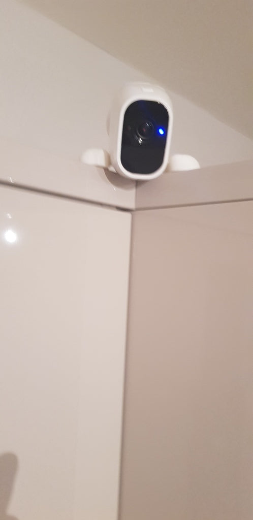 El diseño se crea para permitir que la cámara Arlo se enfoque hacia abajo para su colocación fuera de la vista en un lugar seguro.