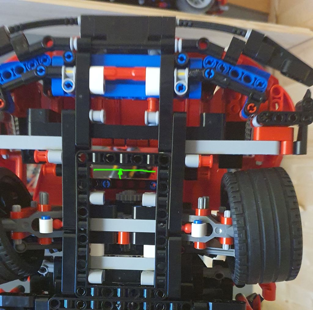 - Fremviser Lego-modellen opretstående med hjulene vendt mod væggen.