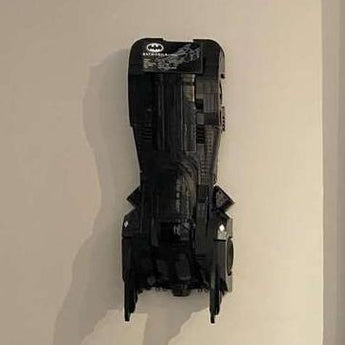 Este es un montaje de pared vertical para el Lego Batmóvil. El montaje está hecho para colgar tu Batmóvil de forma segura en la pared, ya sea con la parte delantera hacia arriba o hacia abajo. Cuelga tu Batmóvil de una forma única y elegante, y muestra tu entusiasmo por Batman a todos. El soporte es fuerte y duradero y puede soportar el peso del Batmóvil sin problemas.