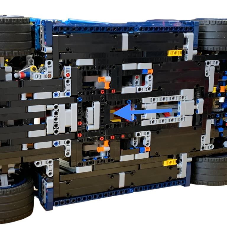 Esta es una simple instalación en la pared para el LEGO 42083 Technic Bugatti Chiron. Se agarra en un punto bastante fuerte del chasis, como puedes ver en la última imagen.