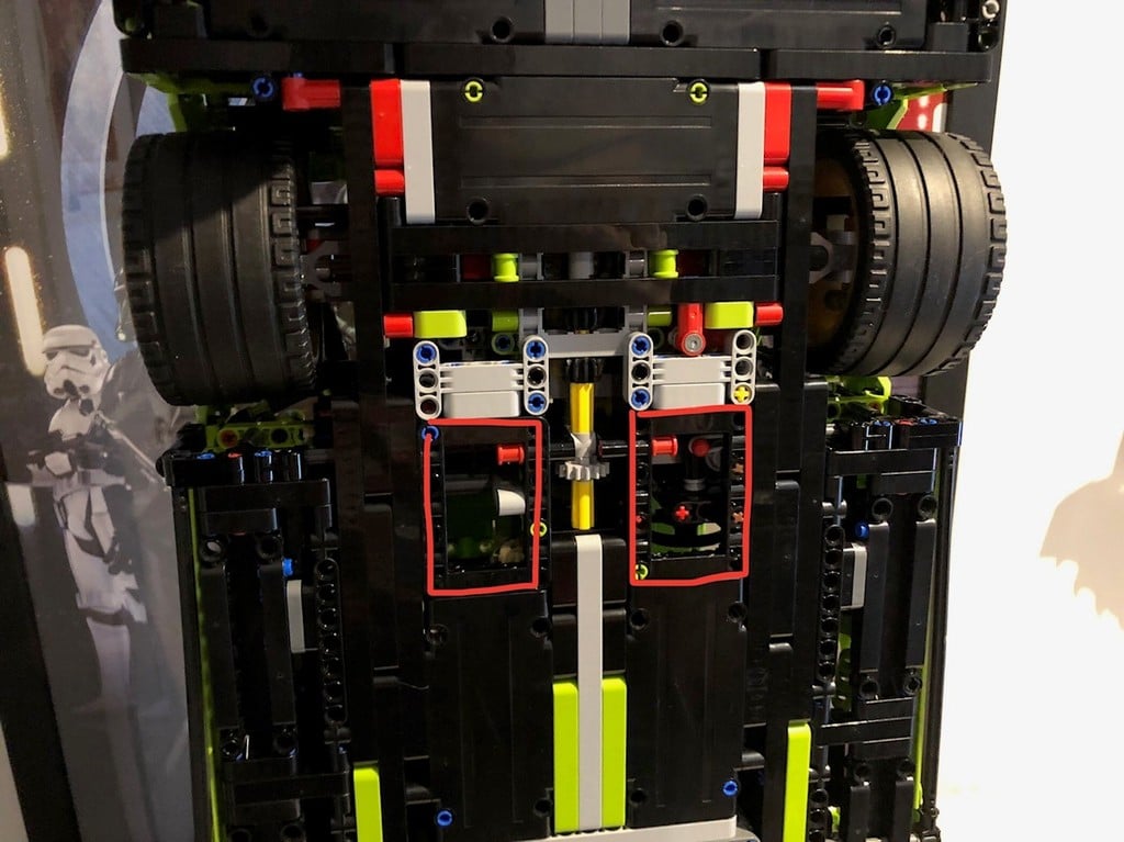 - Se monta de forma segura a través de orificios en la parte inferior del coche Lego