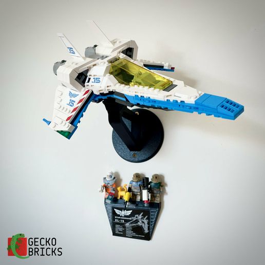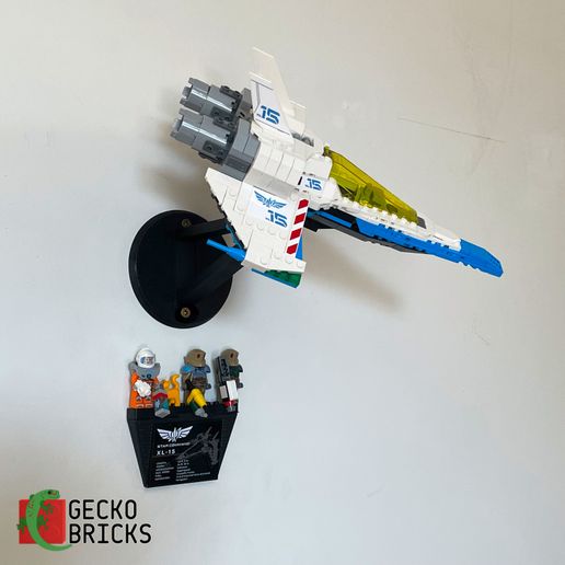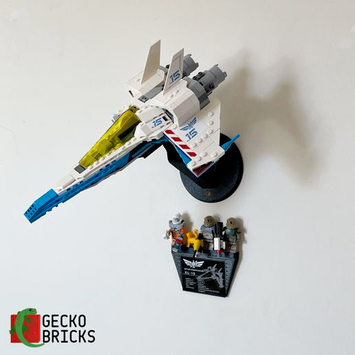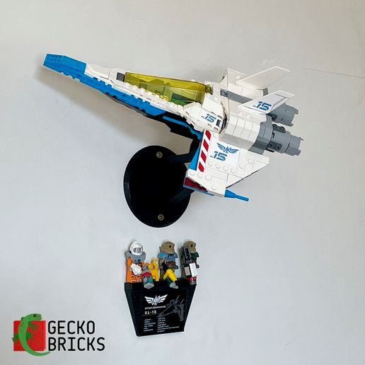 - Soporte de pared diseñado específicamente para la nave espacial LEGO XL-15 (set 76832).