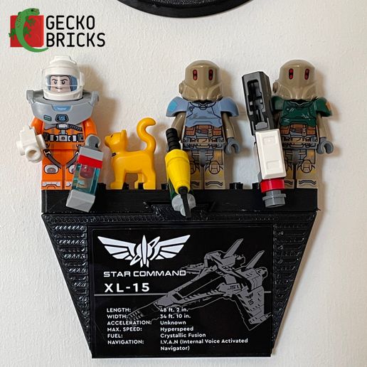 Dale un lugar destacado a tu LEGO XL-15 Spaceship con este soporte de pared funcional. El soporte permite exhibir la nave espacial en varios ángulos e incluye un espacio dedicado tanto para la minifigura como para la placa con el nombre, creando una solución de exhibición completa para tu colección.