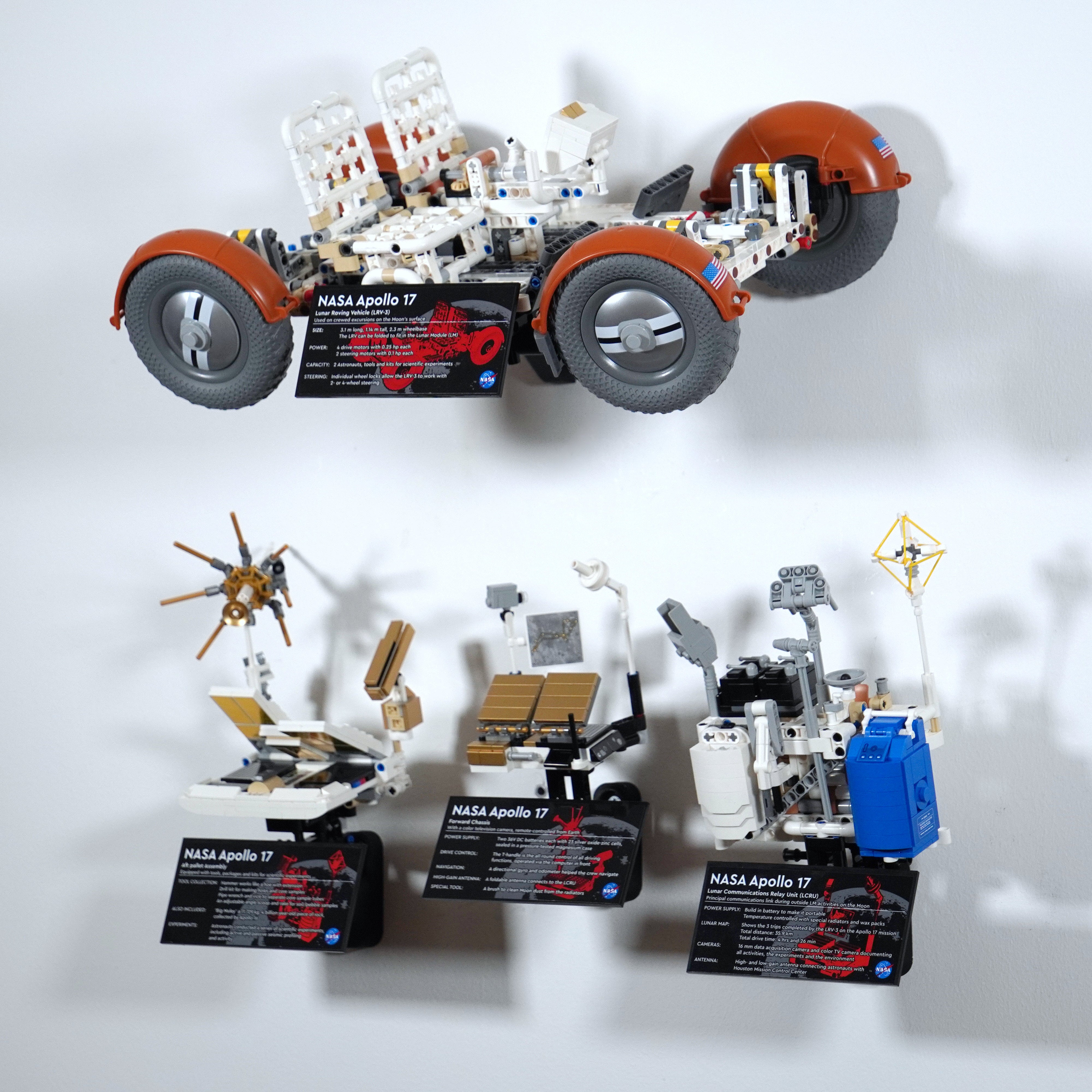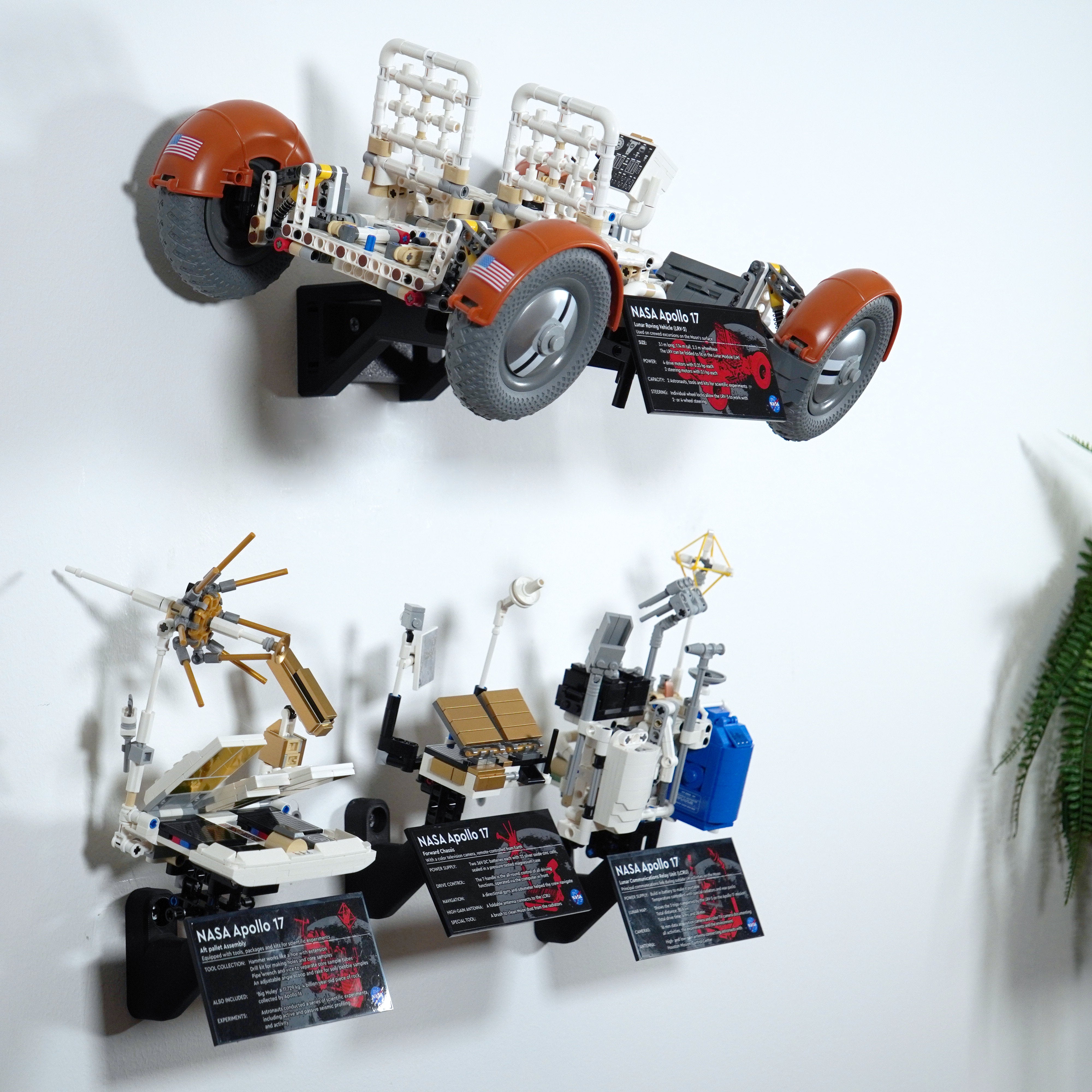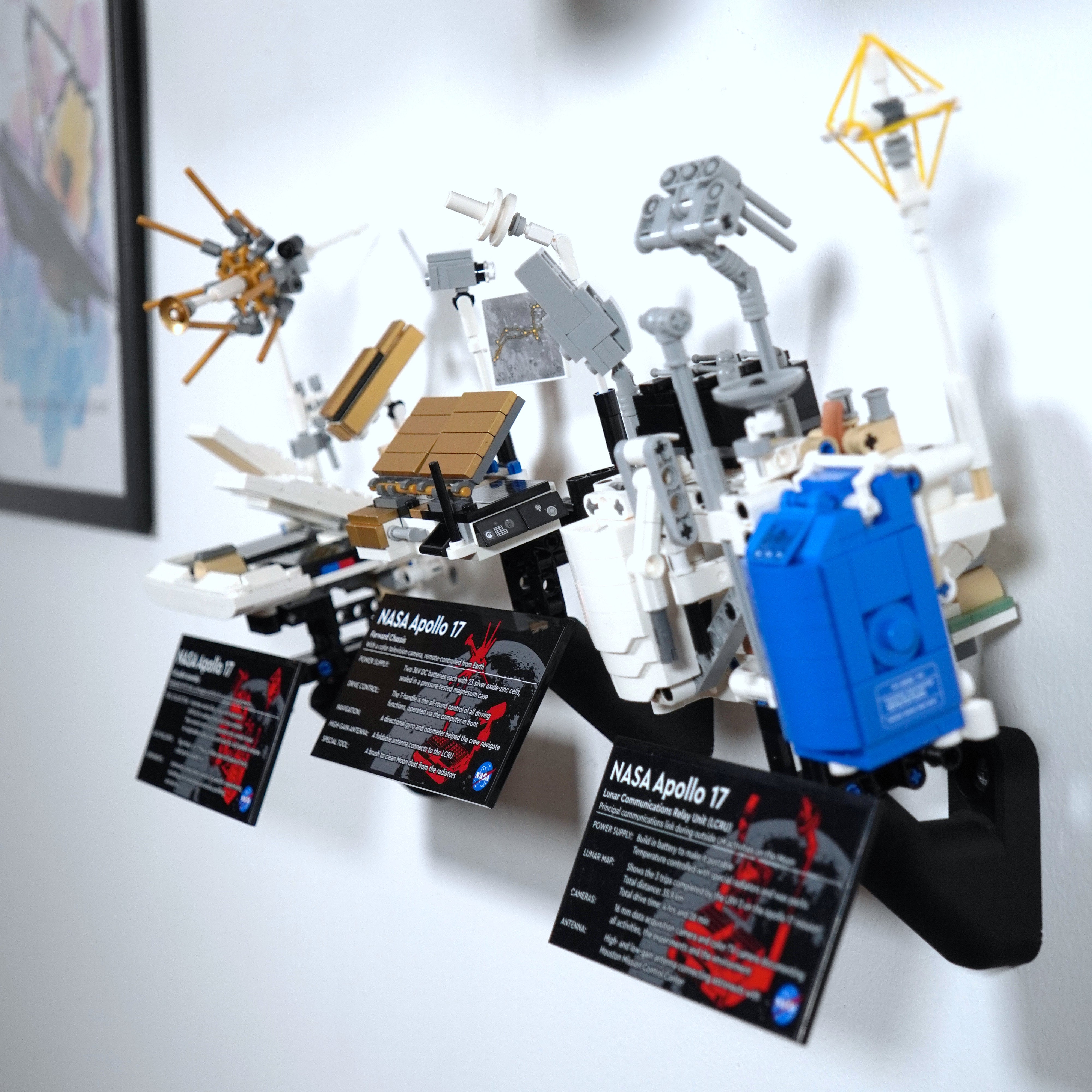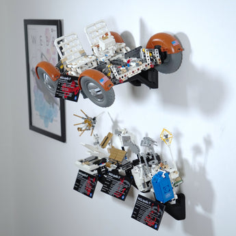 Muestre su elegante vehículo lunar de la NASA Apollo con este soporte de pared. Permite una colocación flexible, ya sea plegado o desplegado, e incluye soportes separados para los módulos y la placa de información. El diseño garantiza una fácil extracción y una configuración personalizada en su pared.