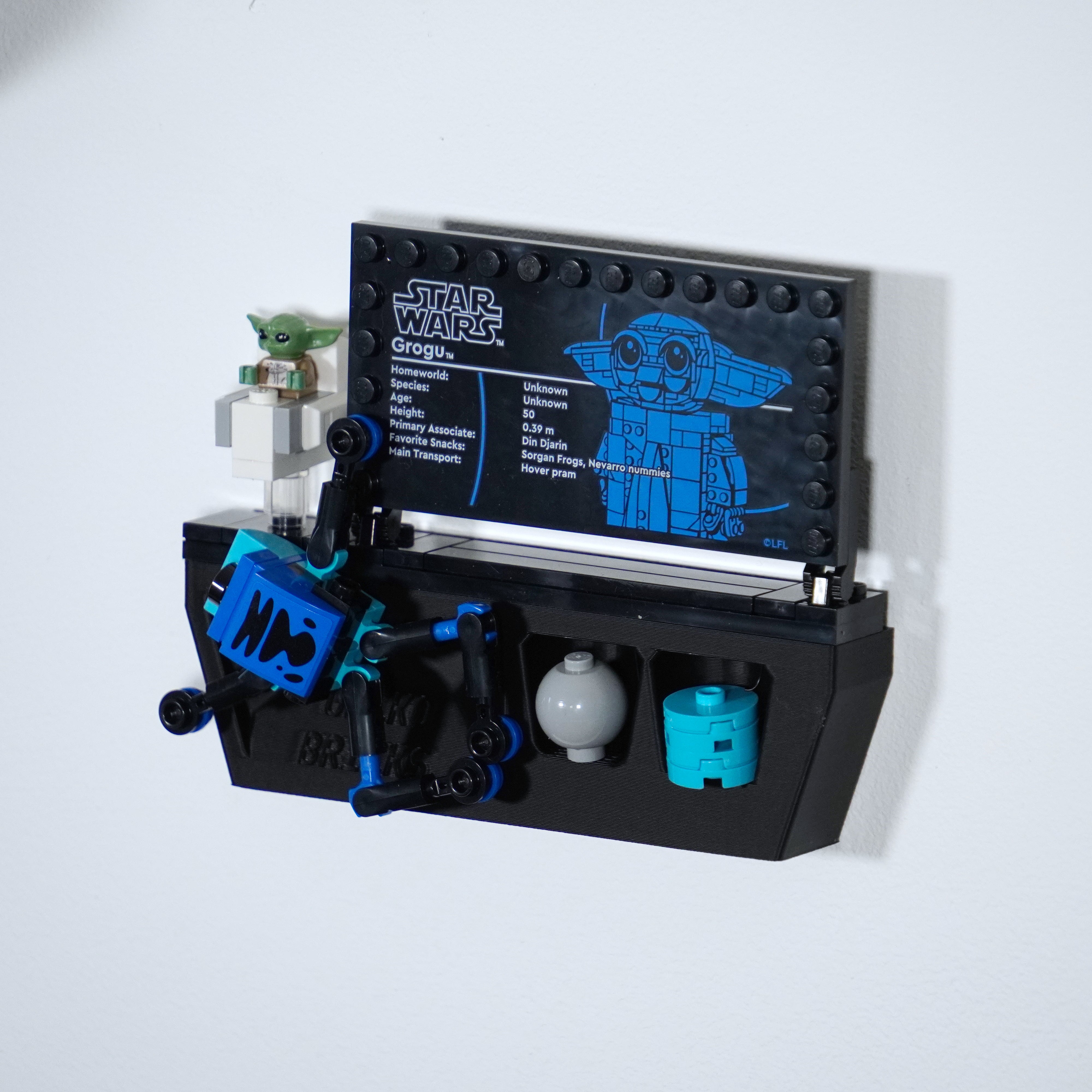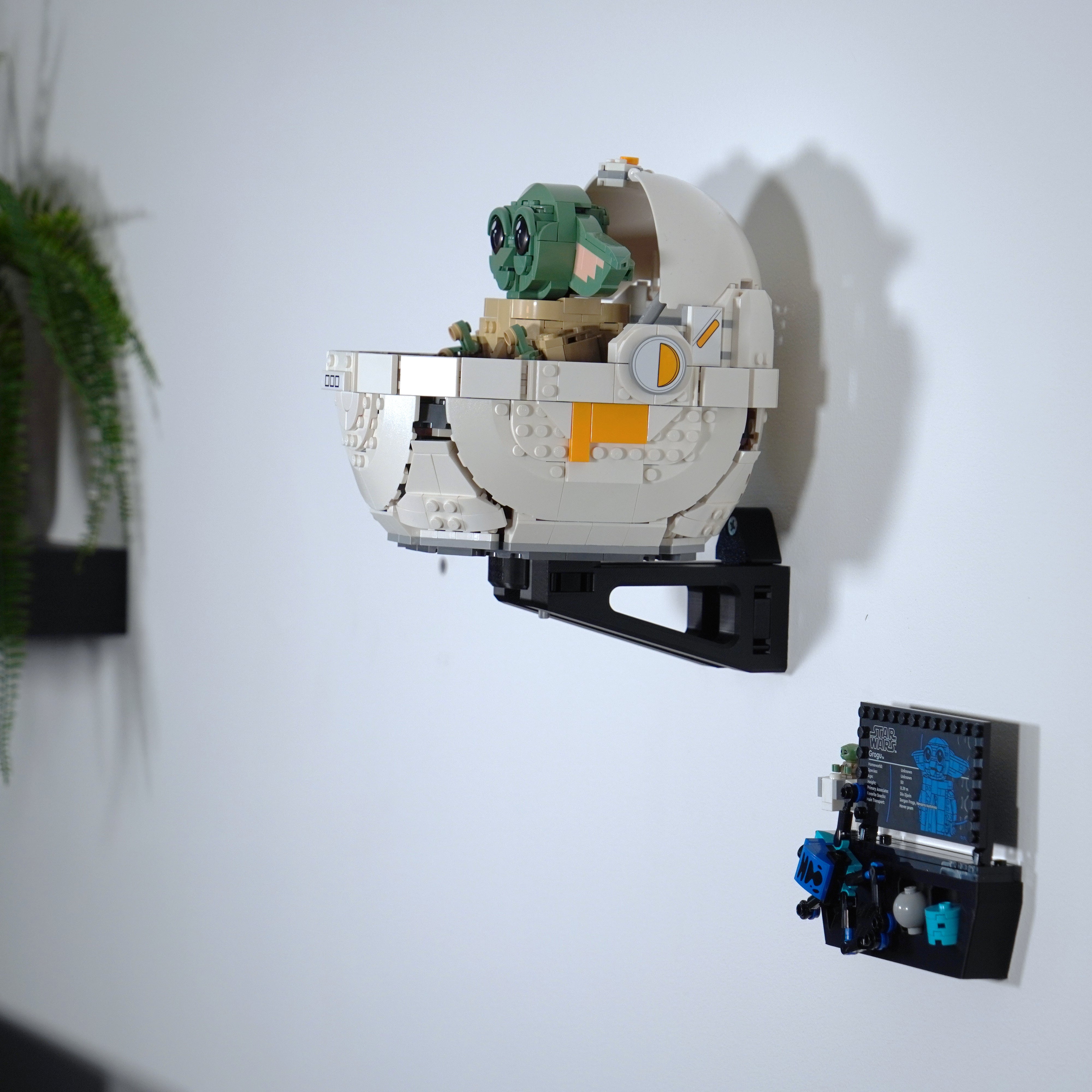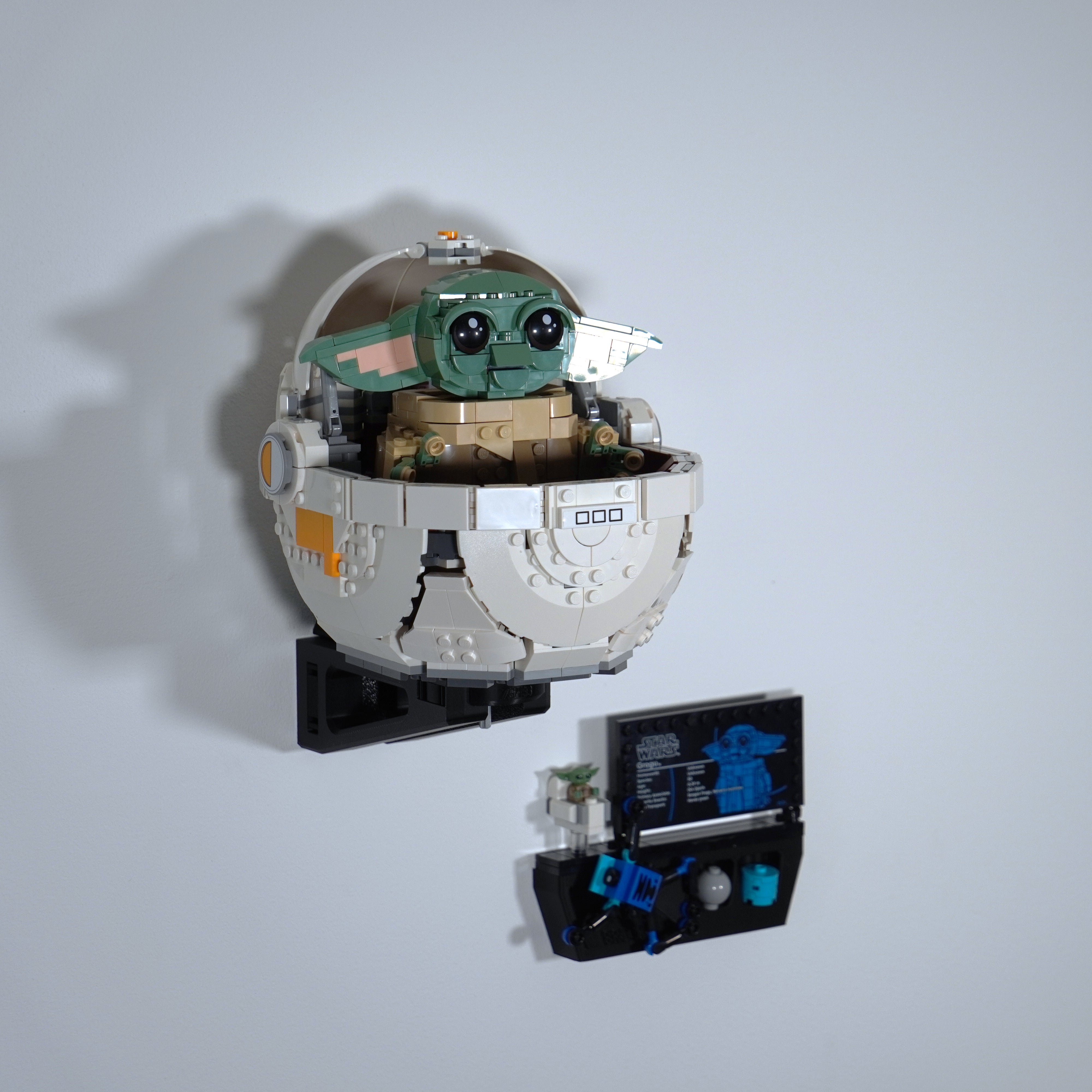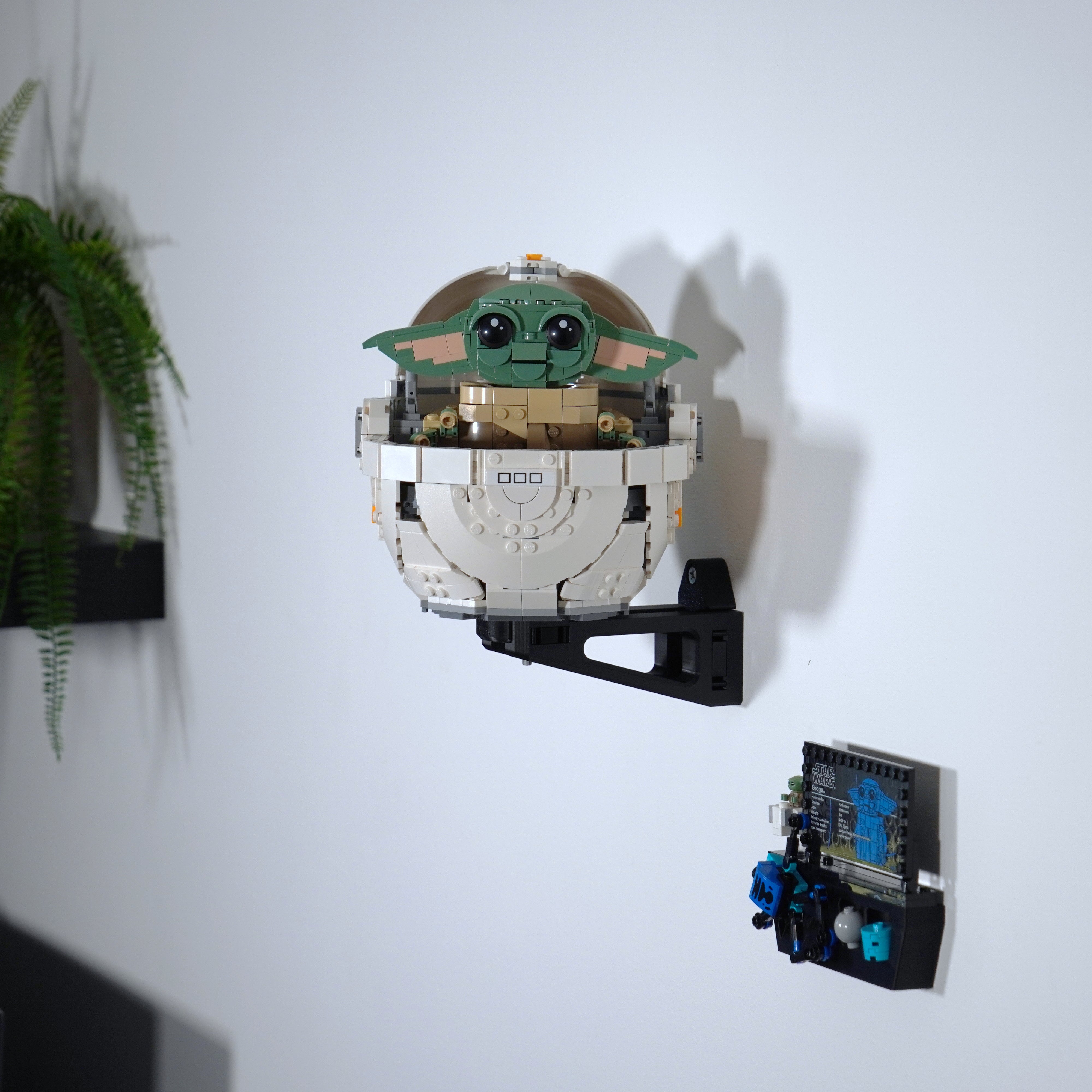 Organiza tu colección con este soporte de pared diseñado específicamente para el set de LEGO Star Wars de Grogu. El soporte se monta fácilmente con un solo tornillo y asegura que el modelo cuelgue de forma estable. Además, hay espacio para la placa informativa y los accesorios, manteniendo todo junto en un solo lugar.