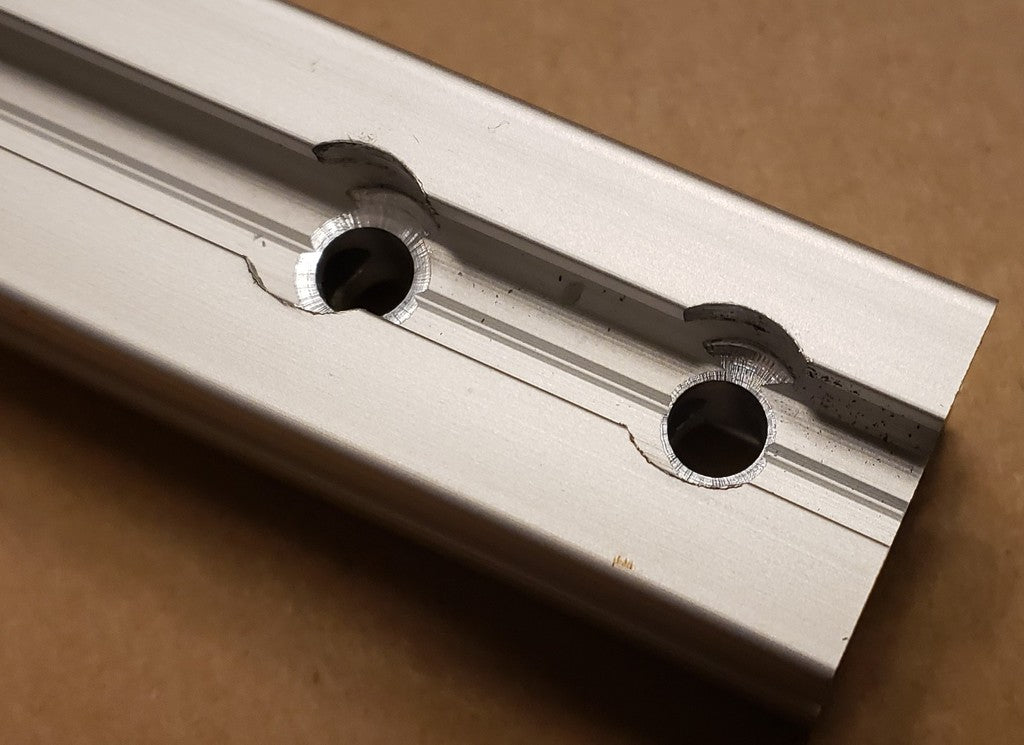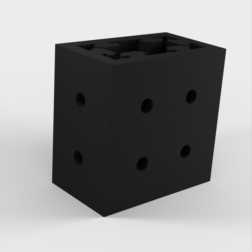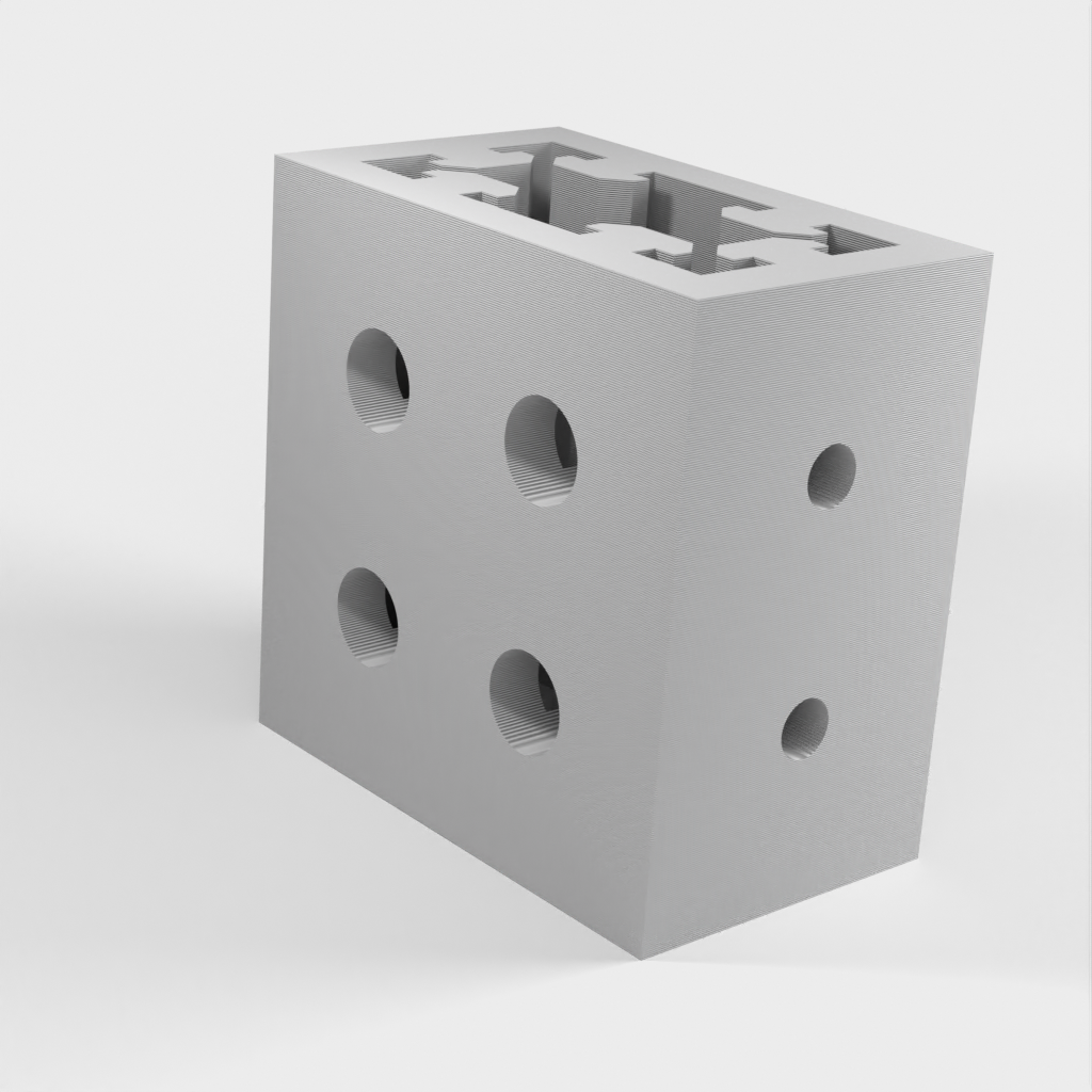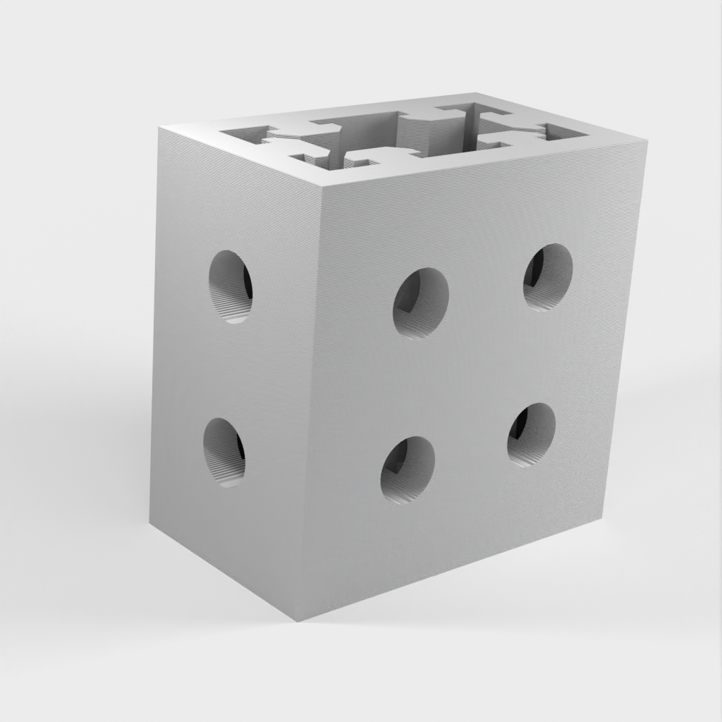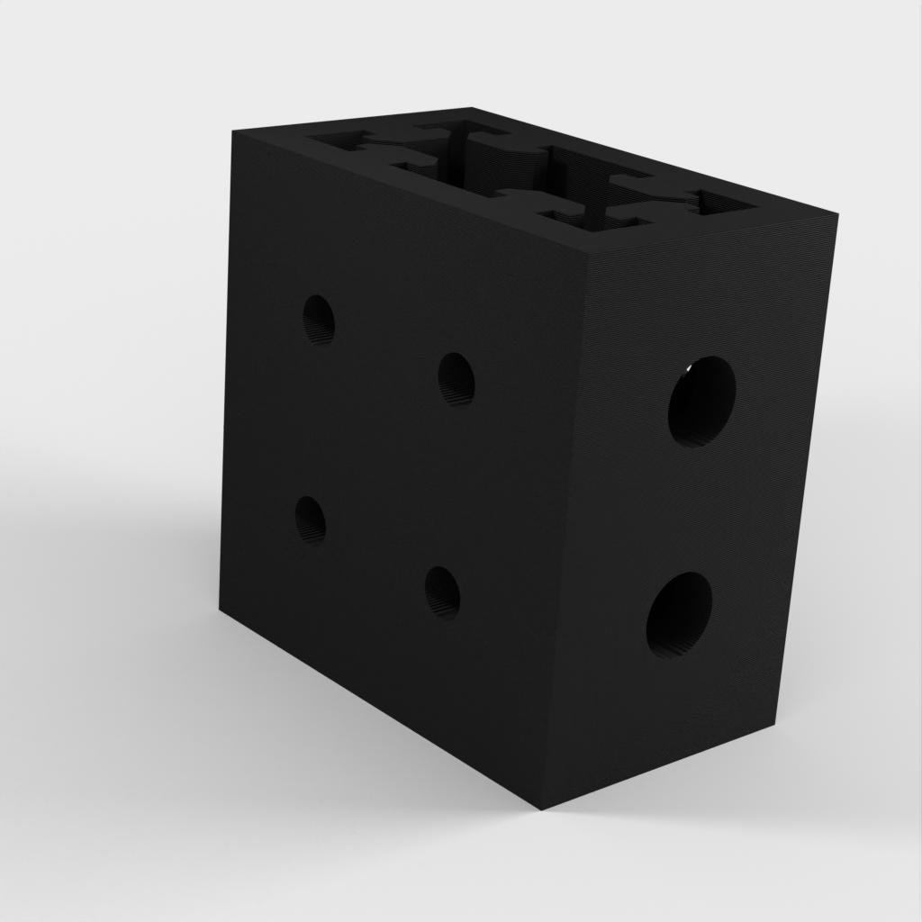 Esta herramienta de guía de broca ajustable es ideal para perfiles T-Slot y V-Slot. Nuestro riel de perforación ayuda con perforaciones precisas para pernos y tapas de pernos. Esta guía de perforación está diseñada para orificios de 5 mm en un lado para perforar el perno y orificios de 8,3 mm en el otro lado para perforar la tapa del perno. También es útil para ayudar a cortar roscas en el extremo de la extrusión. Para obtener el mejor resultado, la extrusión debe insertarse completamente.