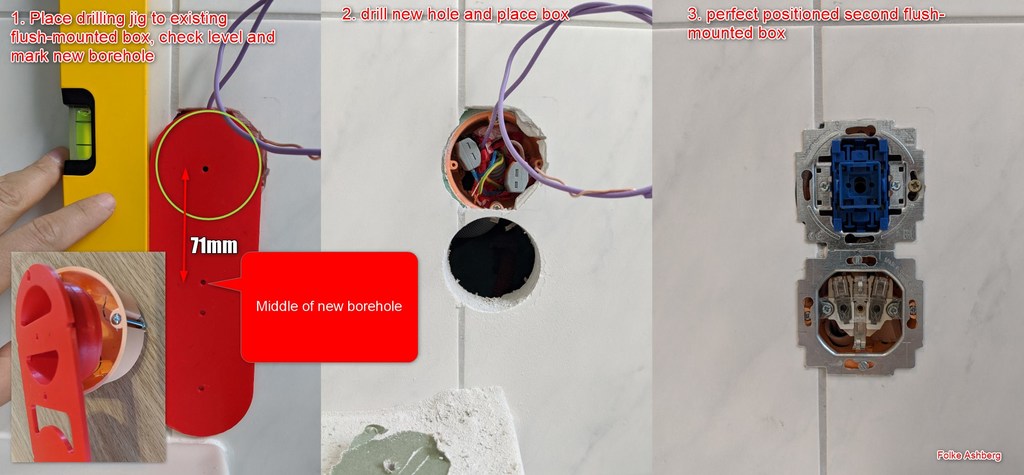 Bohrschablone für Unterputzdose und Holhwalldose Ø68mm, 71mm Abstand