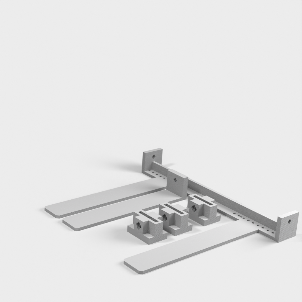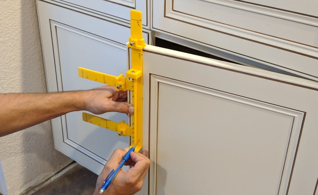 Plantilla para posicionar fácil y exactamente los agujeros para los tiradores de los armarios. La plantilla es ajustable y se puede utilizar para distancias de tiradores de 3', 3,5', 3,75', 4', 4,5', 5', 5,5', 6', 6,5', 7', 7,5' y 16 cm. Con función deslizante para un ajuste preciso. Se puede utilizar tanto para tornillos de máquina de 8-32 como de 1/4'.