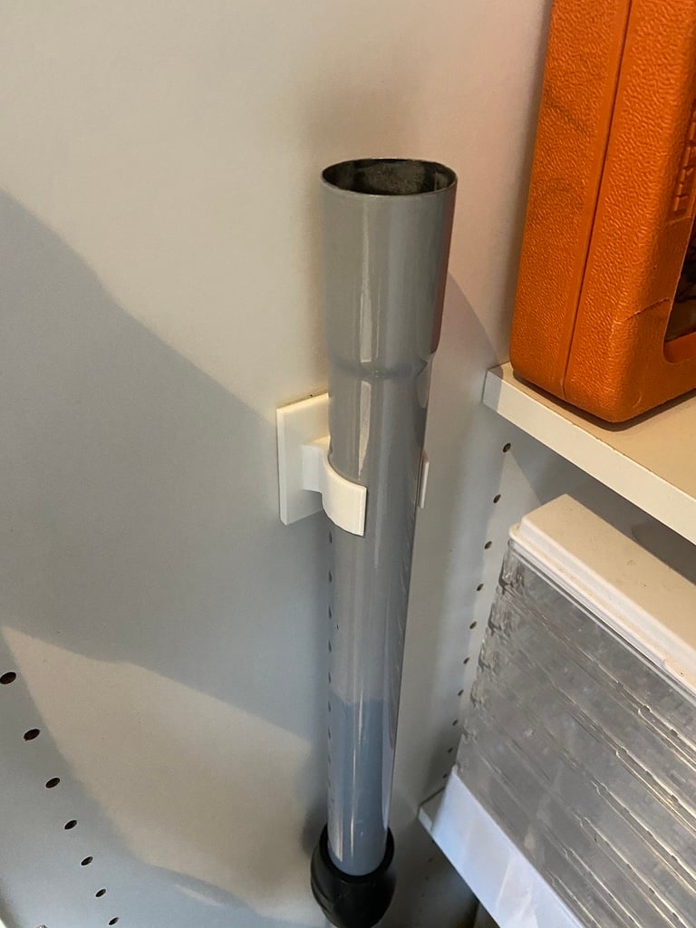 Soporte para tubos de 32 mm, escobas, etc. Fabricado para accesorios de aspiradora para organizar el armario de limpieza. Diseñado con una huella de 50x50 mm para la adherencia de cinta adhesiva de doble cara (no incluida).