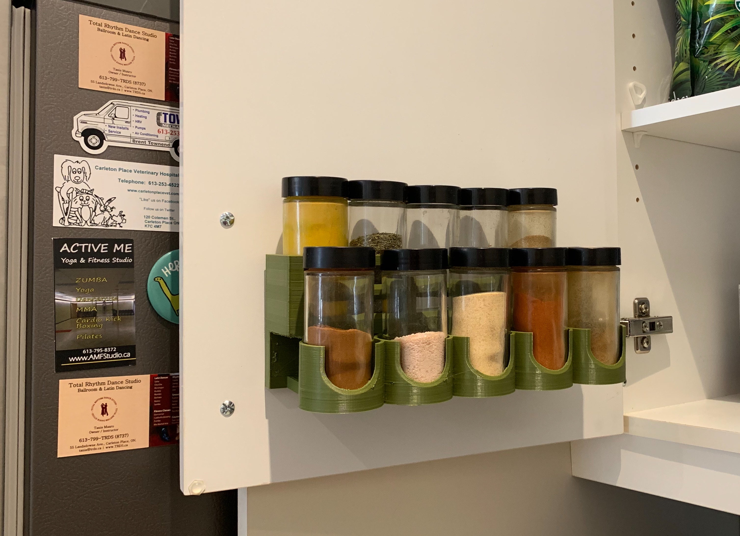 Un soporte de pared para especias para poder colgarlas, por ejemplo, dentro de un armario o en la pared.