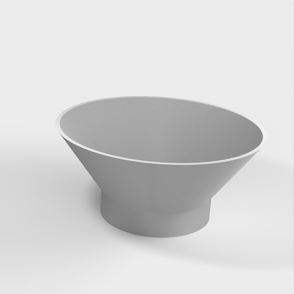 El embudo está dimensionado para molinillos de pimienta Peugeot de tamaño normal, que disponen de una anilla de 30 mm sobre la que encaja el embudo. Probablemente se pueda ajustar para otros modelos y marcas escalando x/y/z. Por supuesto, también puedes utilizar este diseño como inspiración para el tuyo propio.