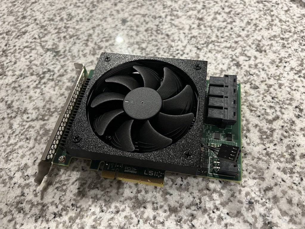 Mejore el rendimiento de refrigeración de su LSI 9300-16i con esta tapa de ventilador Noctua NF-A9x14 diseñada a medida. Esta tapa de ventilador está específicamente ajustada para la tarjeta LSI 9300-16i, permitiendo una disipación de calor eficiente al utilizar un ventilador Noctua NF-A9x14 HS-PWM de primera calidad. Al montar esta tapa de ventilador, puede gestionar de manera efectiva el calor generado por el HBA, asegurando temperaturas óptimas de operación para su sistema.