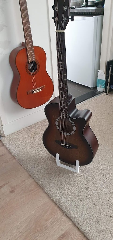 Soporte de guitarra simple diseñado para guardar tu guitarra de forma organizada. Este soporte para guitarra es ideal tanto para tu dormitorio como para tu sala de música. Con su diseño robusto, asegura que tu instrumento musical esté seguro cuando no esté en uso.