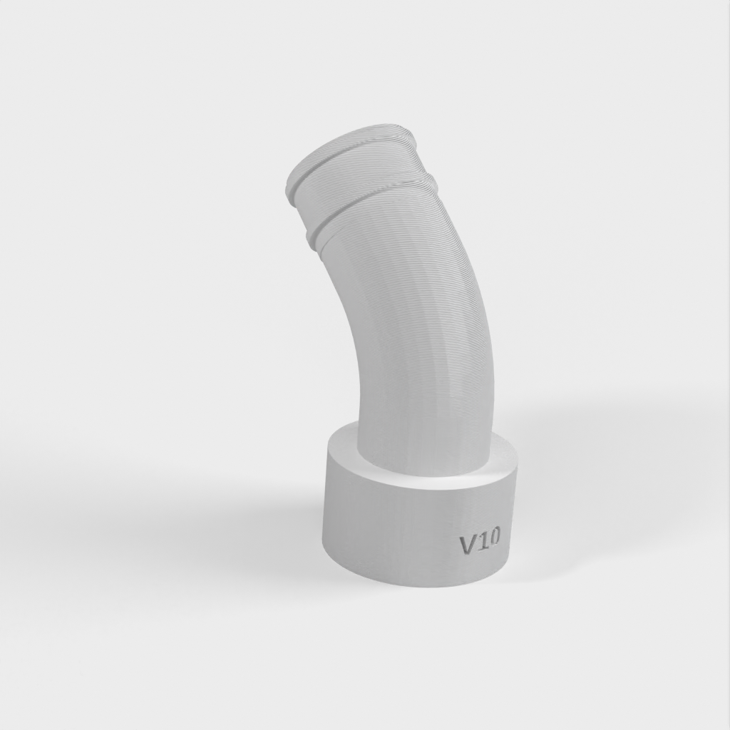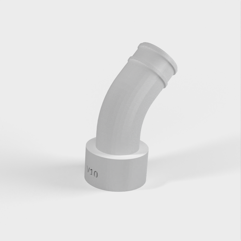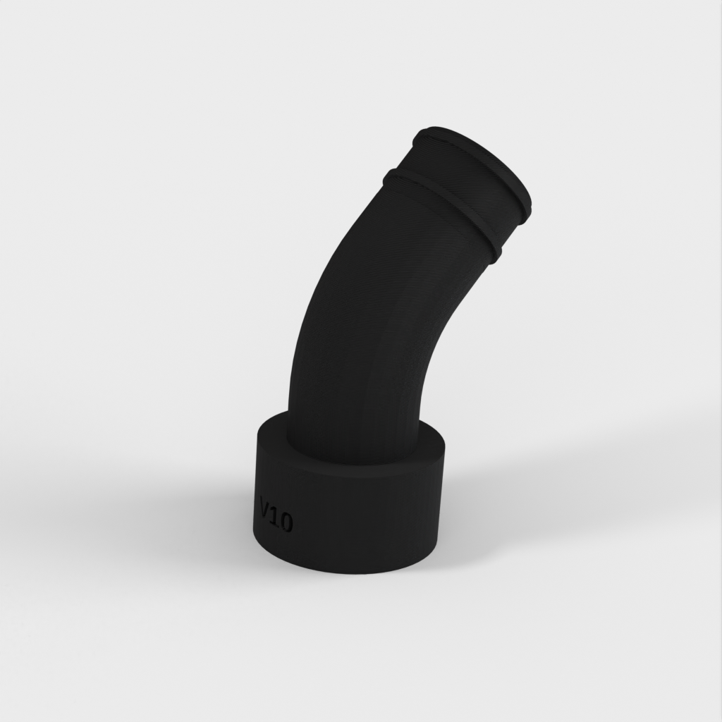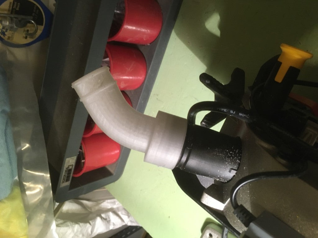 Durante el uso posterior del acoplamiento, descubrí que podía surgir un problema si no había suficiente espacio detrás de la sierra para la parte rígida de la manguera de la aspiradora. Para solucionar esto, lo he rediseñado con una curva para que pueda acoplarse directamente a la manguera flexible y evitar la parte rígida.