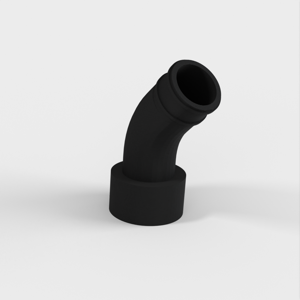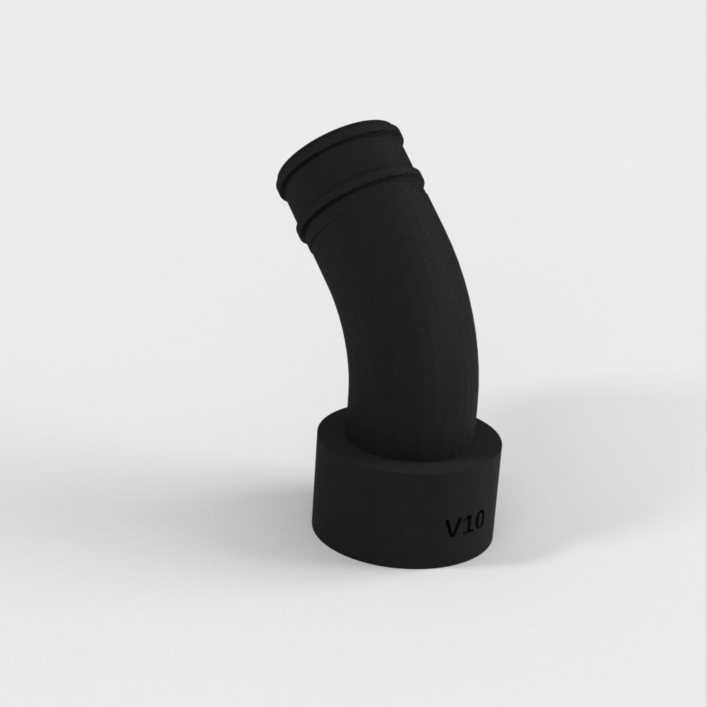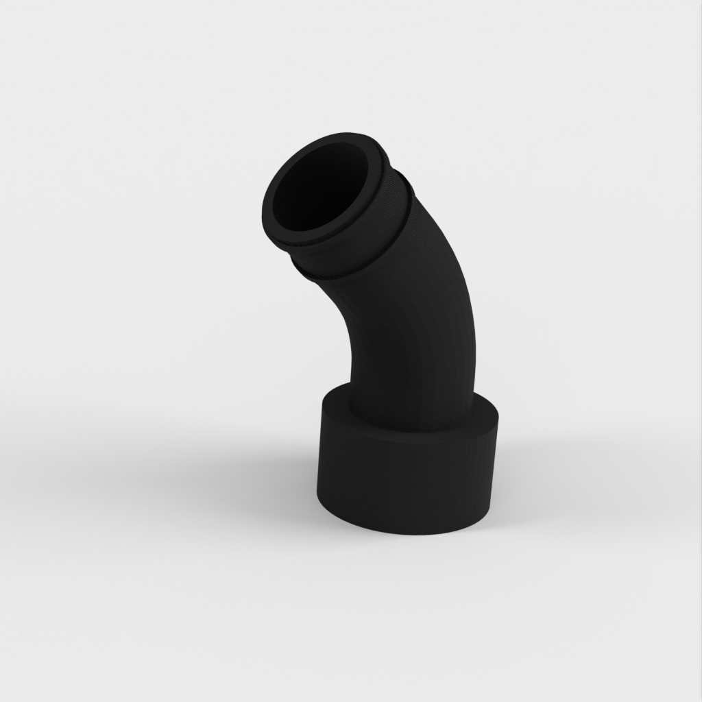 Durante el uso posterior del acoplamiento, descubrí que podía surgir un problema si no había suficiente espacio detrás de la sierra para la parte rígida de la manguera de la aspiradora. Para solucionar esto, lo he rediseñado con una curva para que pueda acoplarse directamente a la manguera flexible y evitar la parte rígida.