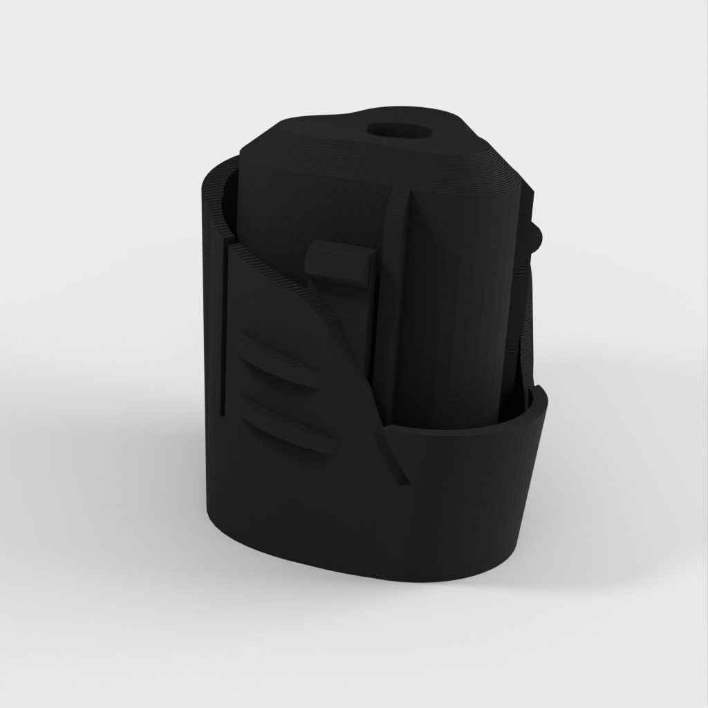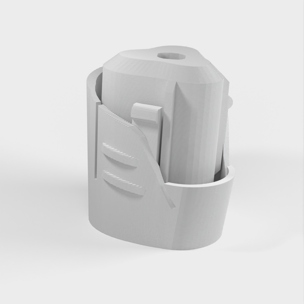 Soporte de pared sencillo para una herramienta Milwaukee M12. La suspensión utiliza el orificio para la batería y, por lo tanto, la herramienta se monta fácilmente en la suspensión.