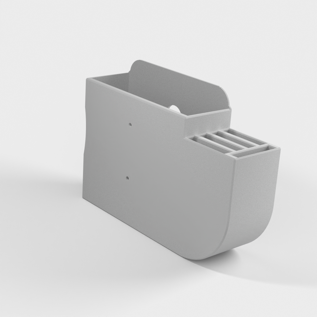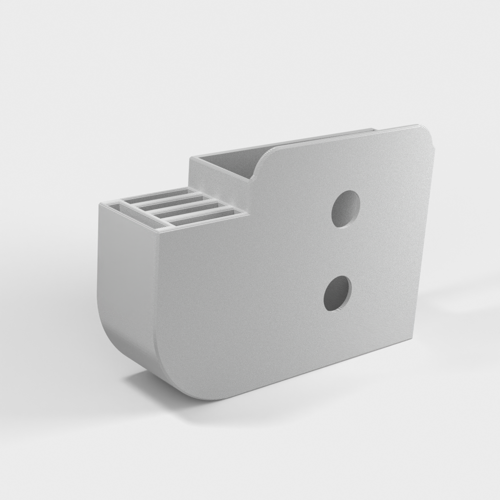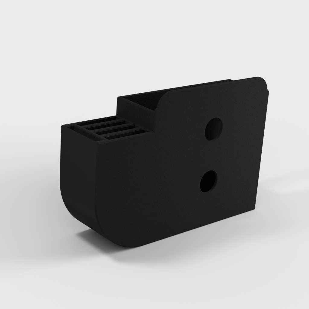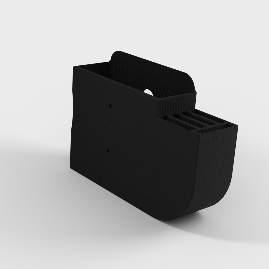Este montaje está diseñado específicamente para la unidad DAC inalámbrica SteelSeries Arctis Pro y ofrece una solución práctica para mantener su escritorio organizado. Permite montar su DAC de forma segura debajo del escritorio, lo que libera espacio valioso y mantiene los cables fuera de la vista. Además de mantener el DAC en su lugar, el montaje también incluye ranuras dedicadas para almacenar baterías adicionales, lo que garantiza que siempre tenga energía lista para sus auriculares inalámbricos SteelSeries Arctis Pro. La unidad es de fácil acceso, incluso cuando está montada debajo del escritorio, lo que hace que los ajustes y la carga sean sencillos.