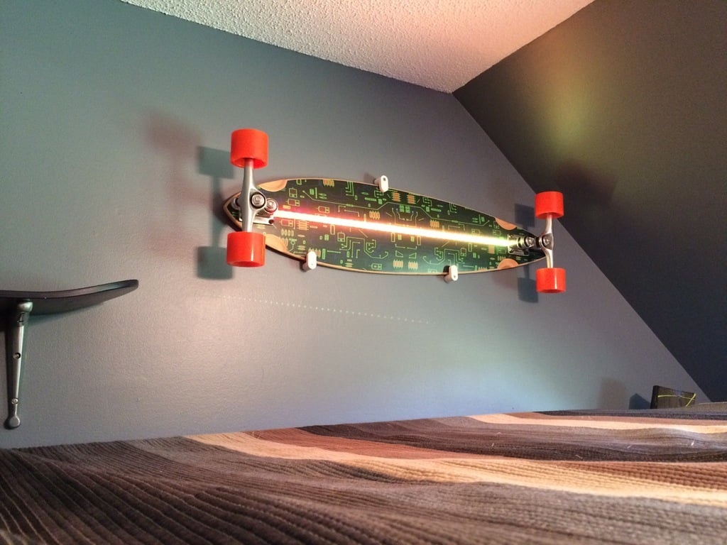 Este soporte de montaje en pared para longboard/skateboard le permite mostrar elegantemente su tabla en la pared horizontalmente, con los gráficos hacia afuera. Para quitar fácilmente la tabla, simplemente gire el gancho superior y deslice la tabla hacia arriba y hacia afuera.