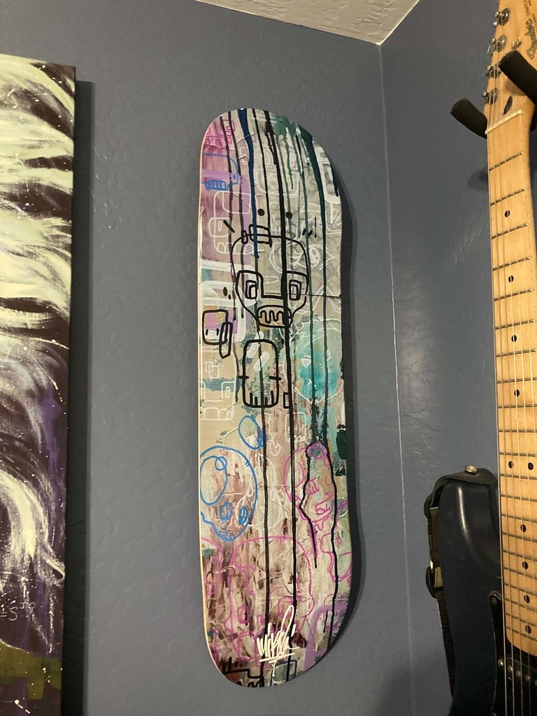El soporte de pared para tabla de skate es un montaje de pared para tablas de skate. Use uno para sujetar una tabla verticalmente o dos para sujetar una tabla horizontalmente. Los orificios de montaje están alineados con los orificios de montaje de la plataforma, por lo que se puede colocar un destornillador hasta el final, como se muestra en la imagen. Se utilizaron herrajes estándar para patinetas para asegurar la plataforma al soporte.