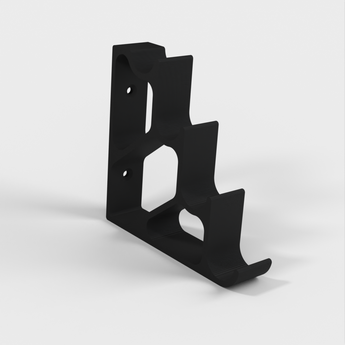 Soporte de pared sencillo que puede contener hasta 3 ruedas de bicicleta estándar.