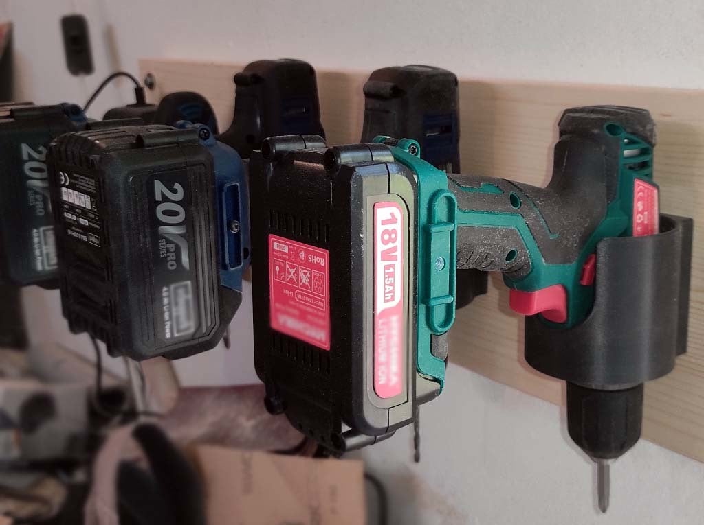 Este soporte de pared para herramientas eléctricas/taladro es simple y fácil de imprimir. Está diseñado para adaptarse prácticamente a cualquier tamaño o marca de herramienta y permite guardar la herramienta sin tener que quitar los cabezales de los taladros.