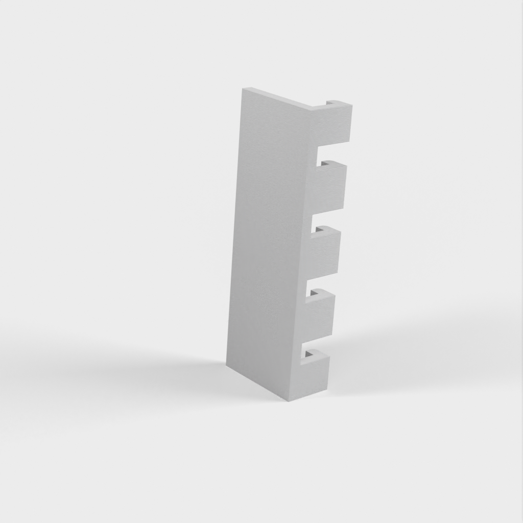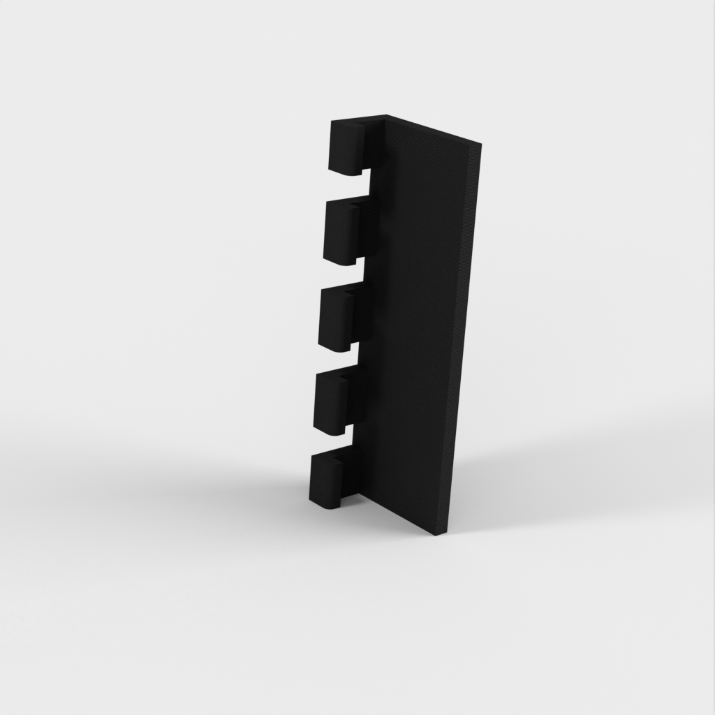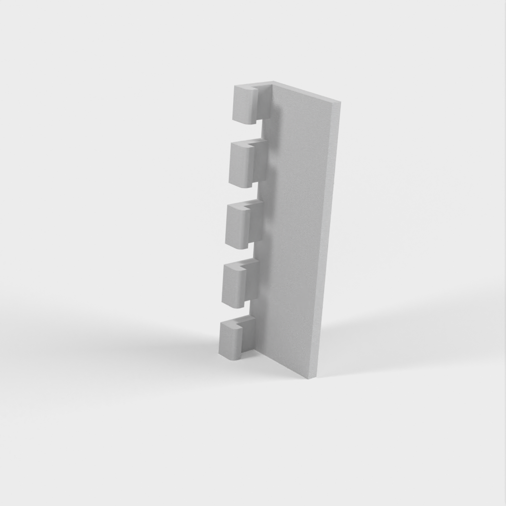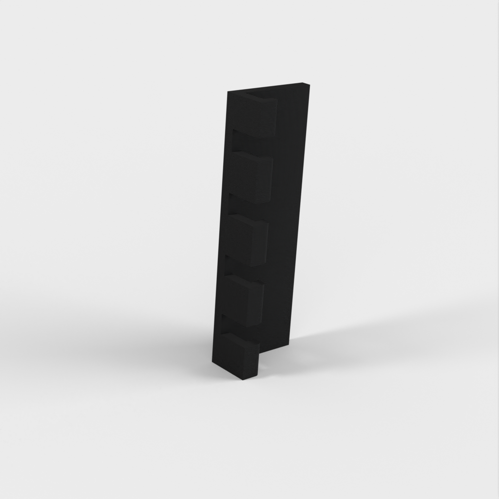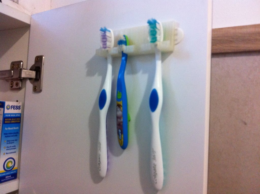 Un soporte para cepillos de dientes realmente sencillo con capacidad para cuatro cepillos de dientes. Simplemente imprímelo y con cinta adhesiva de doble cara o una lengüeta 3M fija el portacepillos donde lo necesites.