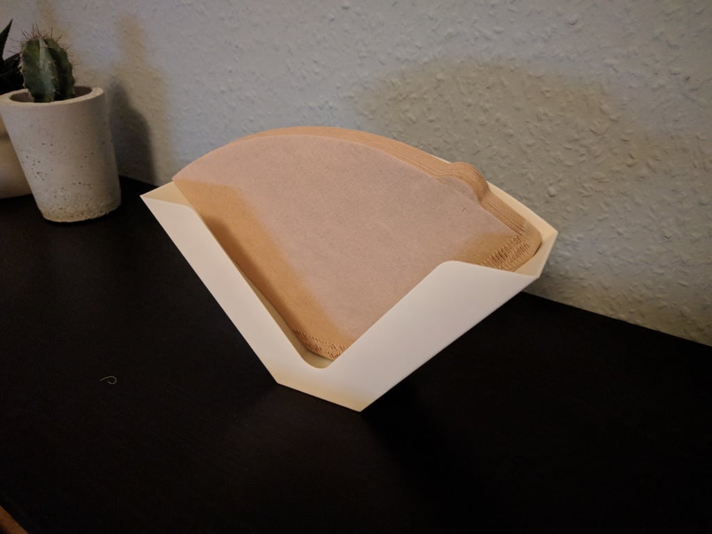 Se trata de un soporte para filtros de café que se puede atornillar al interior de un mueble o a la pared. Facilita el seguimiento de los filtros de café y los hace fácilmente accesibles cuando necesita preparar café.