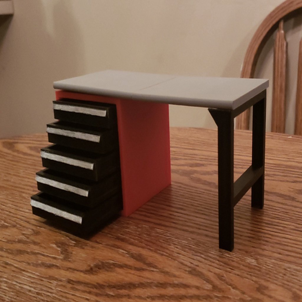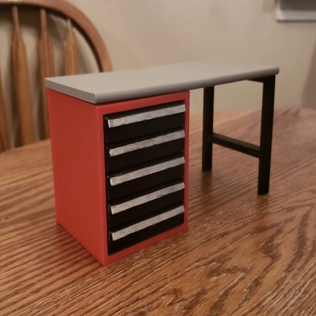 Esta mesa de taller a escala con armario para herramientas es una adición detallada a cualquier garaje o taller en miniatura. Diseñado a escala 1:10, encaja perfectamente en entornos con vehículos RC y otras construcciones de modelos, creando un marco auténtico para tus proyectos de hobby. El armario para herramientas es completamente funcional con cajones que te permiten organizar tus piezas pequeñas y herramientas en miniatura de manera eficiente. Esto proporciona un flujo de trabajo sin esfuerzo y facilita la organización, para que la configuración de tu modelo pueda soportar una "búsqueda de competidores" en términos de funcionalidad y nivel de detalle.